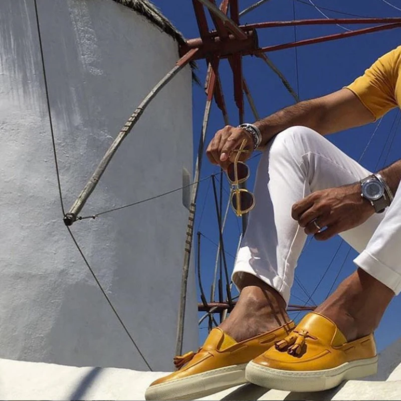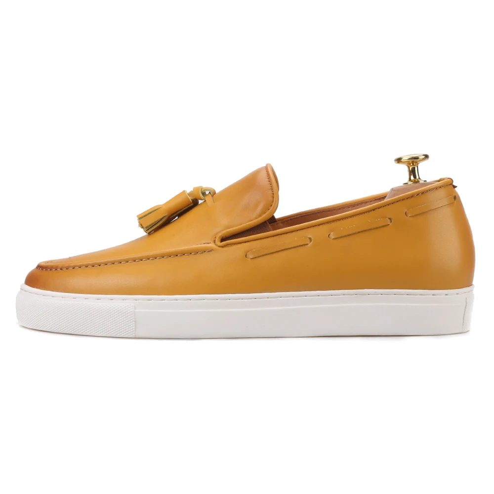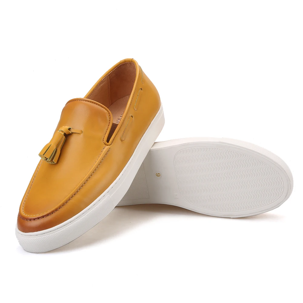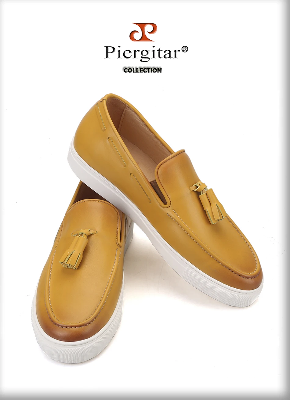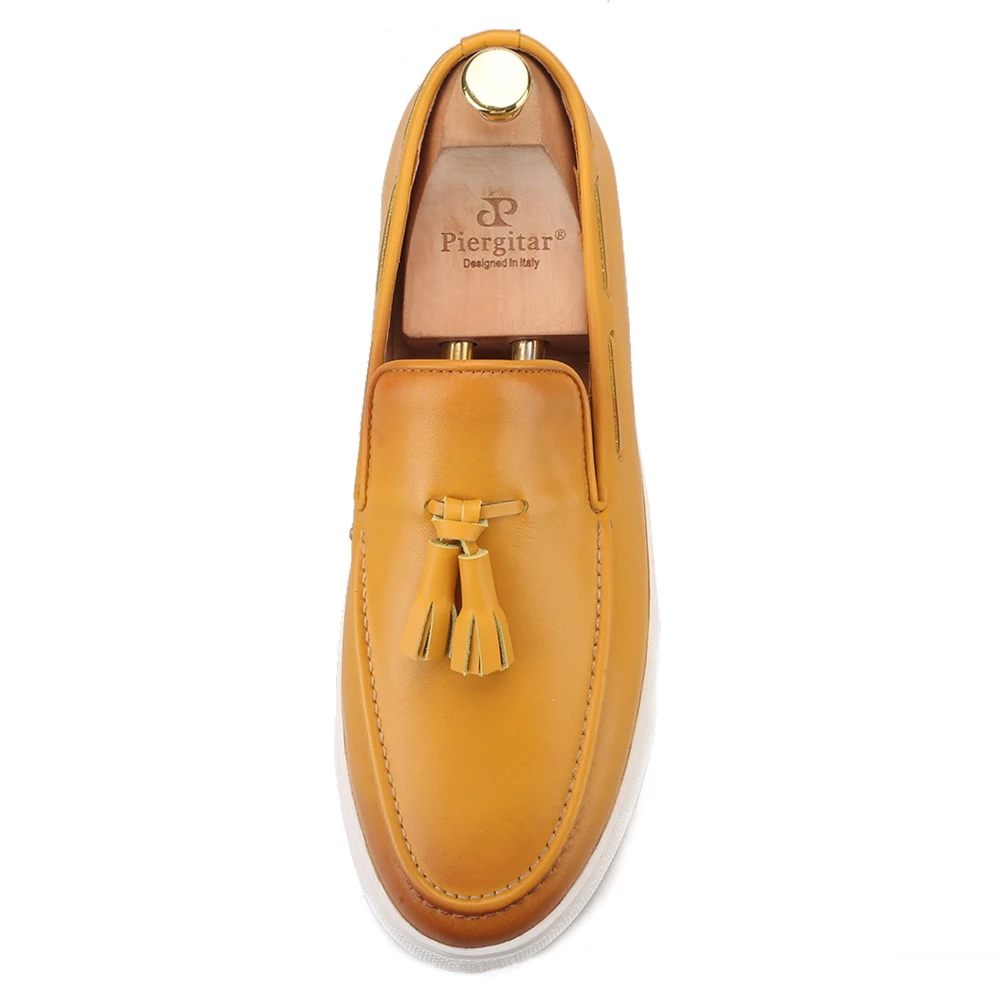 Кроссовки мужские Piergitar, желтые, из коровьей кожи, с белой подошвой, спортивный стиль, 2019