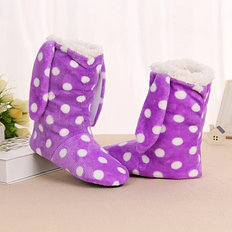 Glglgegeтеплые домашние тапочки на толстой плюшевой подкладке, Нескользящие мягкие домашние тапочки с кроличьими ушками