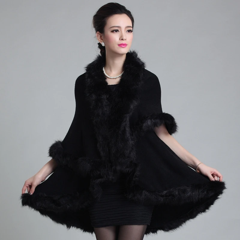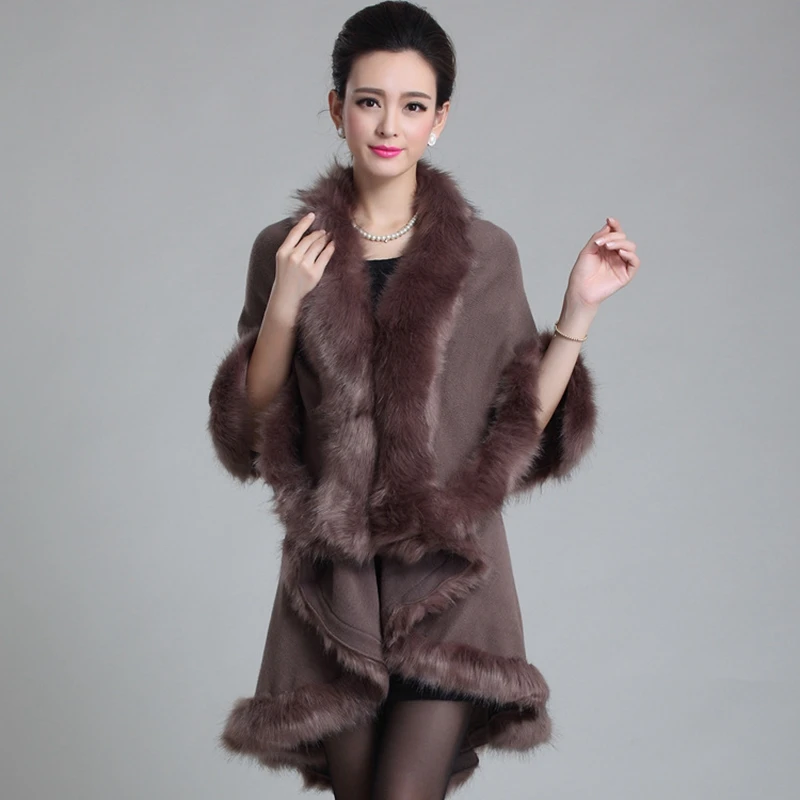 Женское меховое пальто, накидка, шаль, зимний теплый двухслойный Кардиган большого размера, пальто из искусственного лисьего меха, женская верхняя одежда, накидка, пончо
