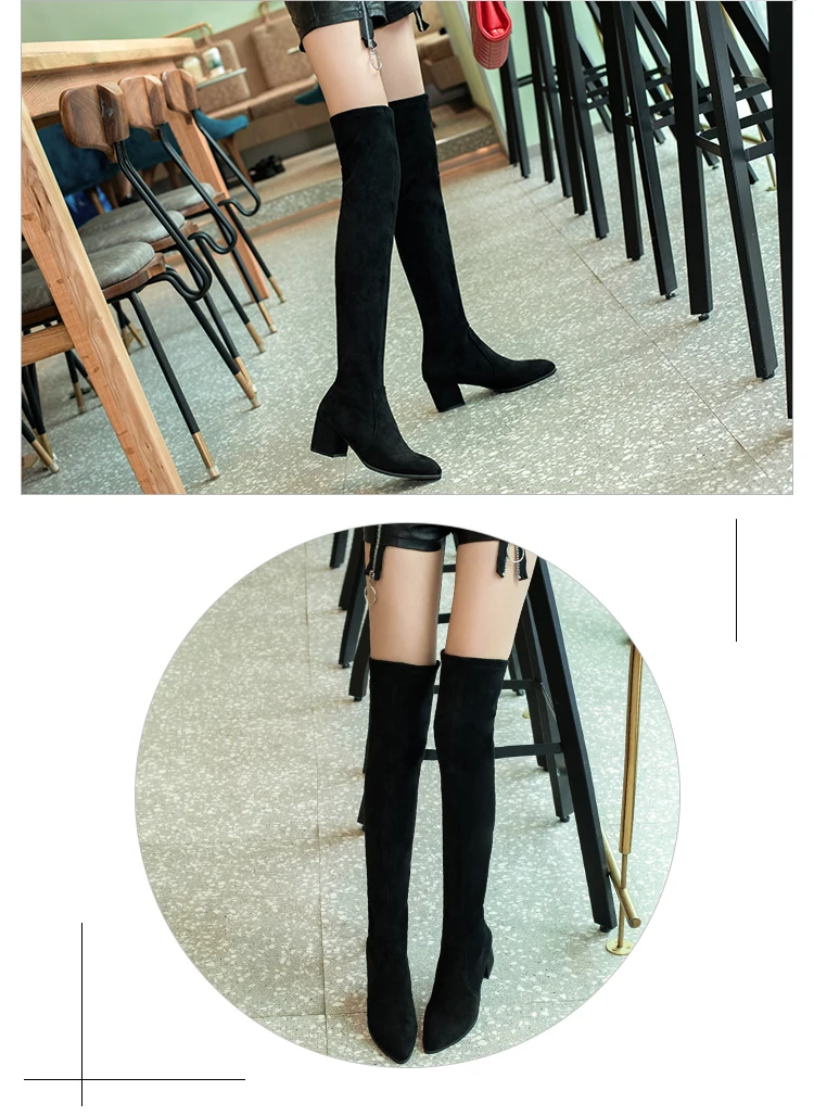 Осенние красивые женские Сапоги выше колена; Модная универсальная зимняя обувь с острым носком; Элегантные Универсальные женские сапоги