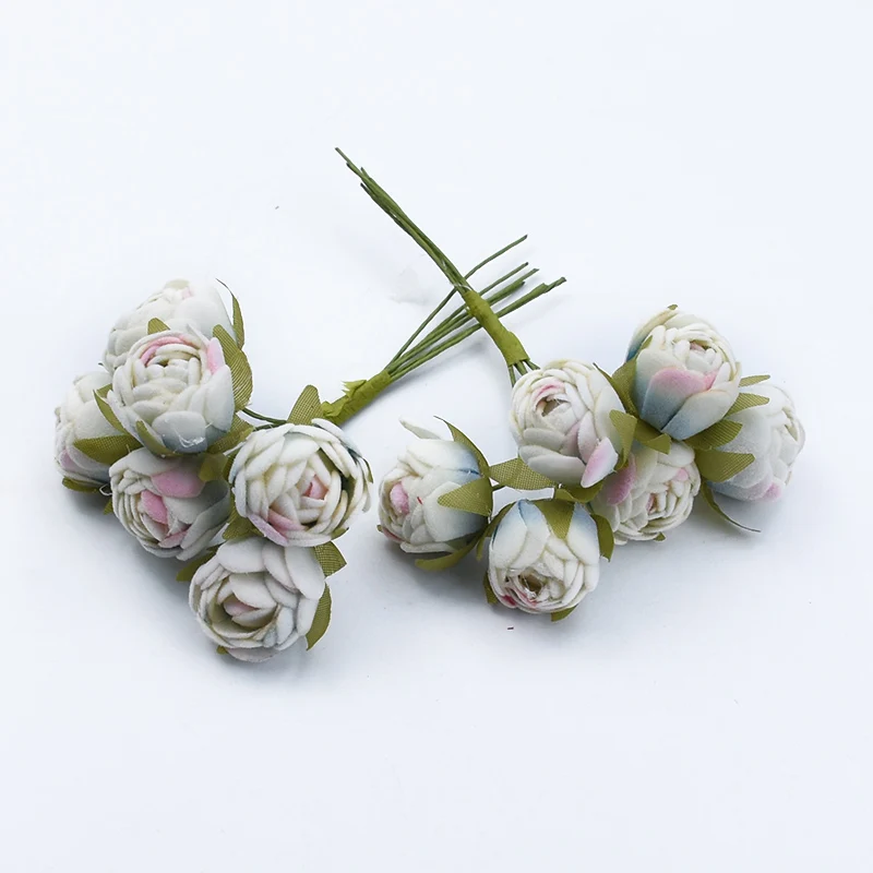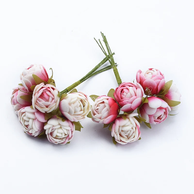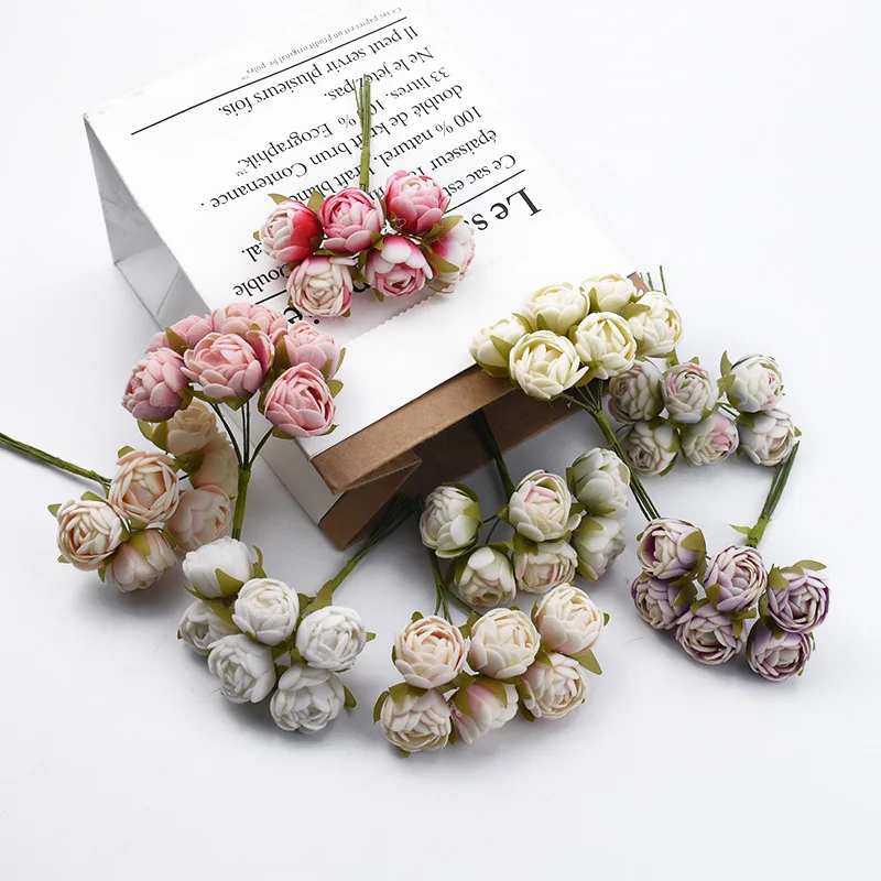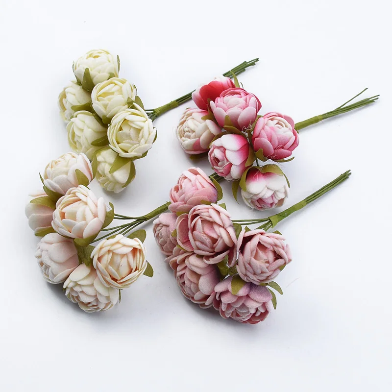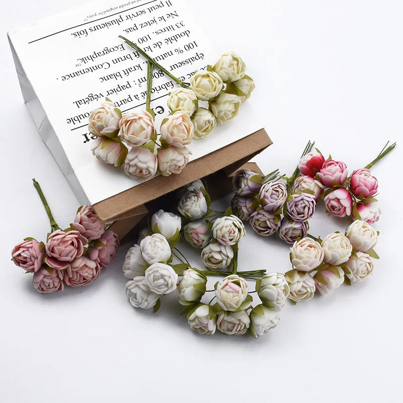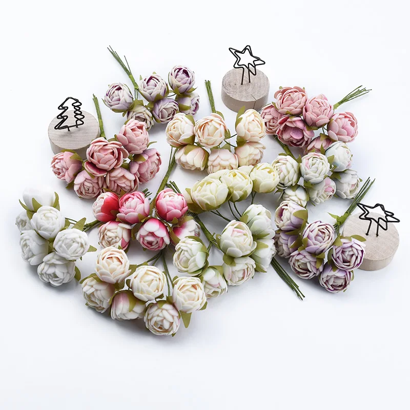 Мини-букет из чайных роз, разноцветные аксессуары для украшения дома, Рождественская гирлянда, коробка для свадебных подарков, искусственные цветы, 6 шт.