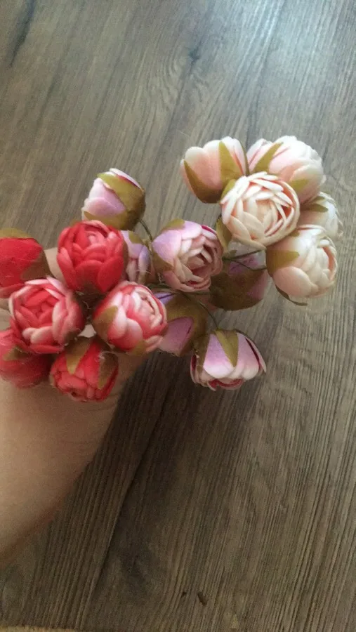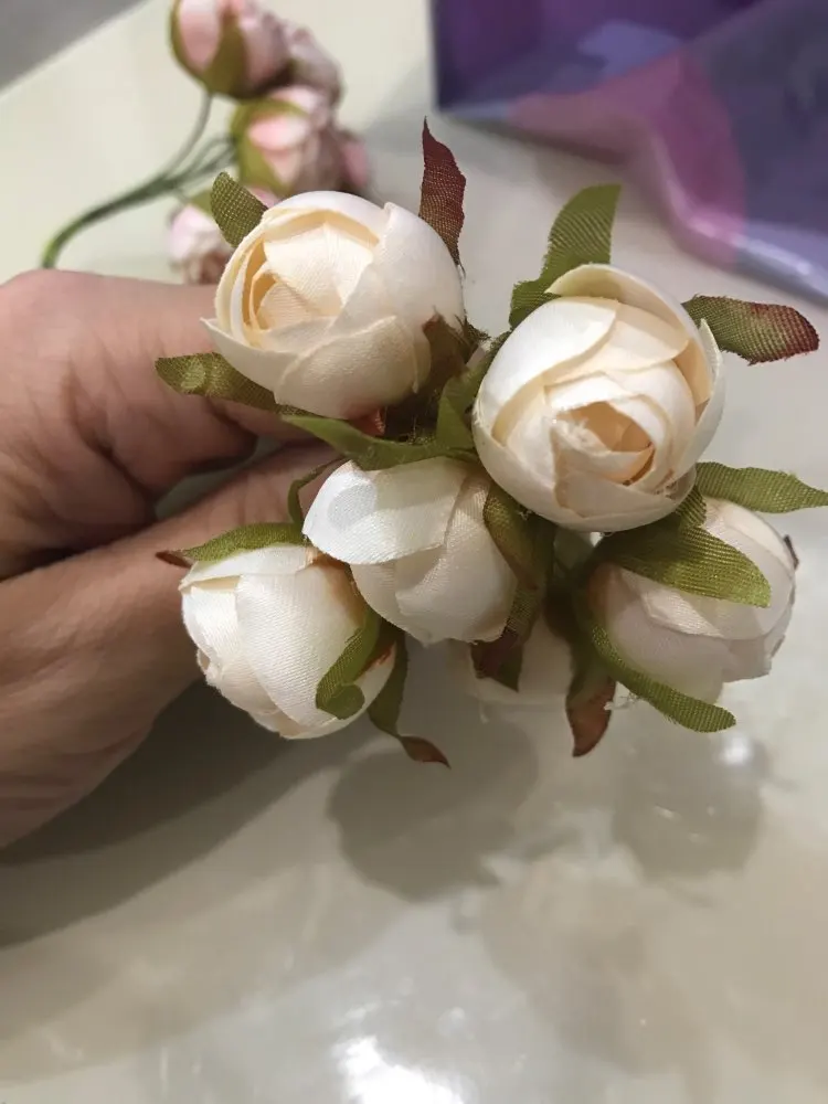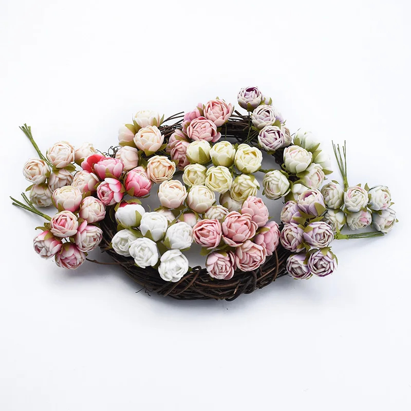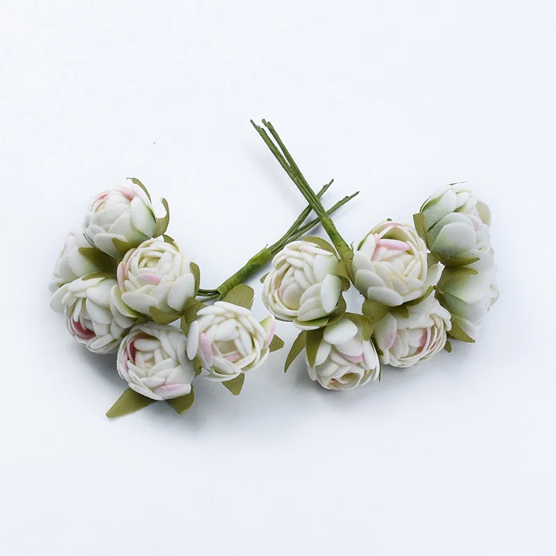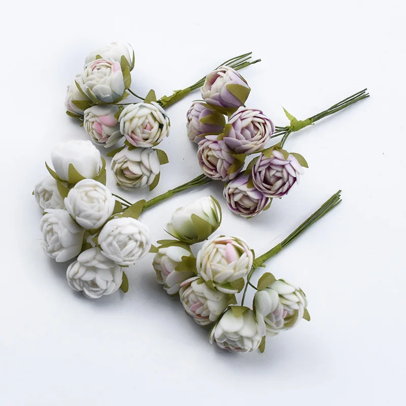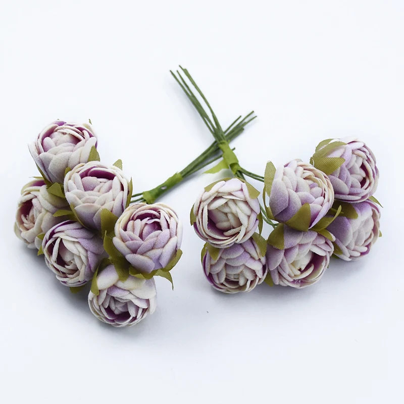 Мини-букет из чайных роз, разноцветные аксессуары для украшения дома, Рождественская гирлянда, коробка для свадебных подарков, искусственные цветы, 6 шт.