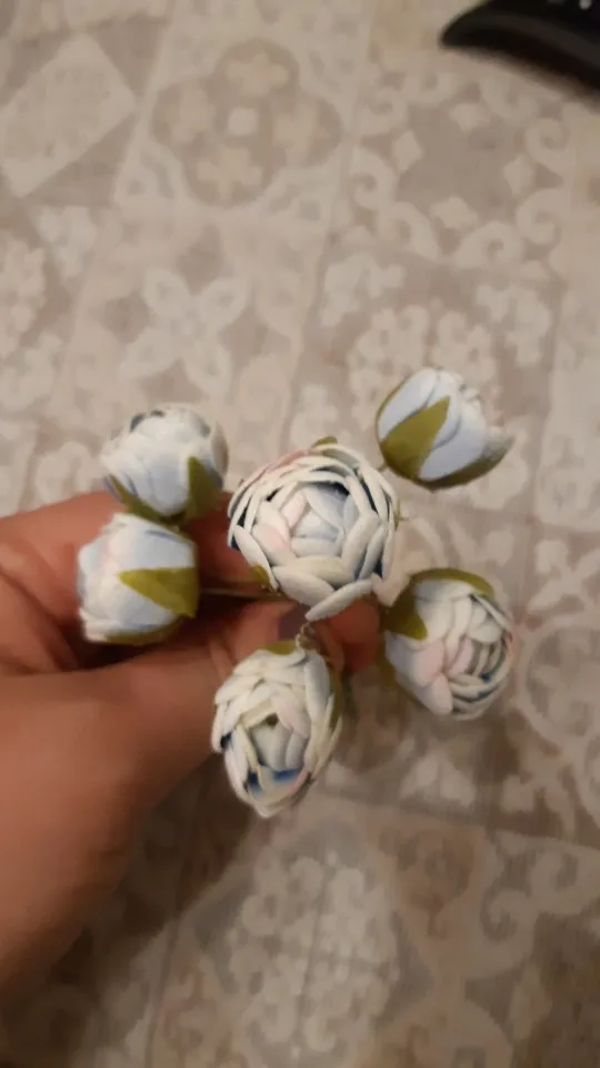 По сравнению с другими цветами, они выглядят ниже по качеству. Материал из войлока, хотя и не очень сделан, выглядит очень ложно. Это экономичный вариант, но я искала цветы, которые казались максимально реальными.