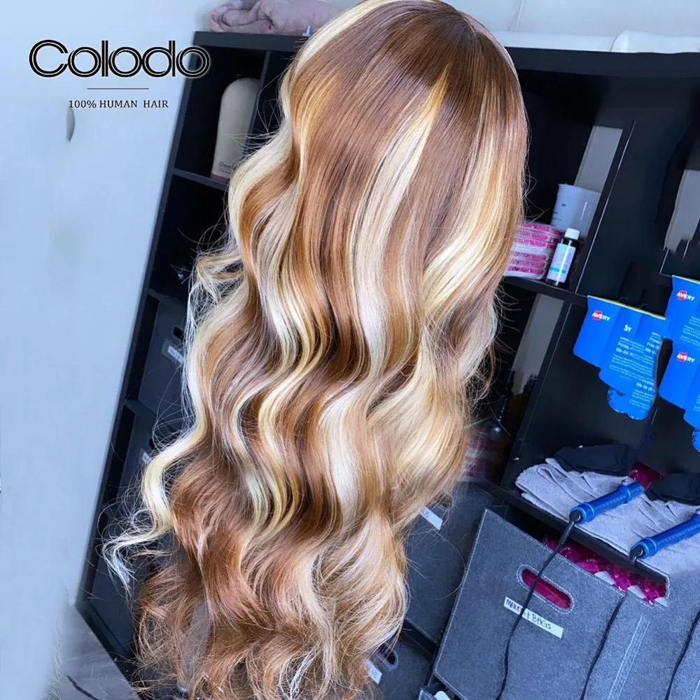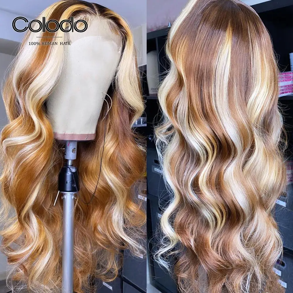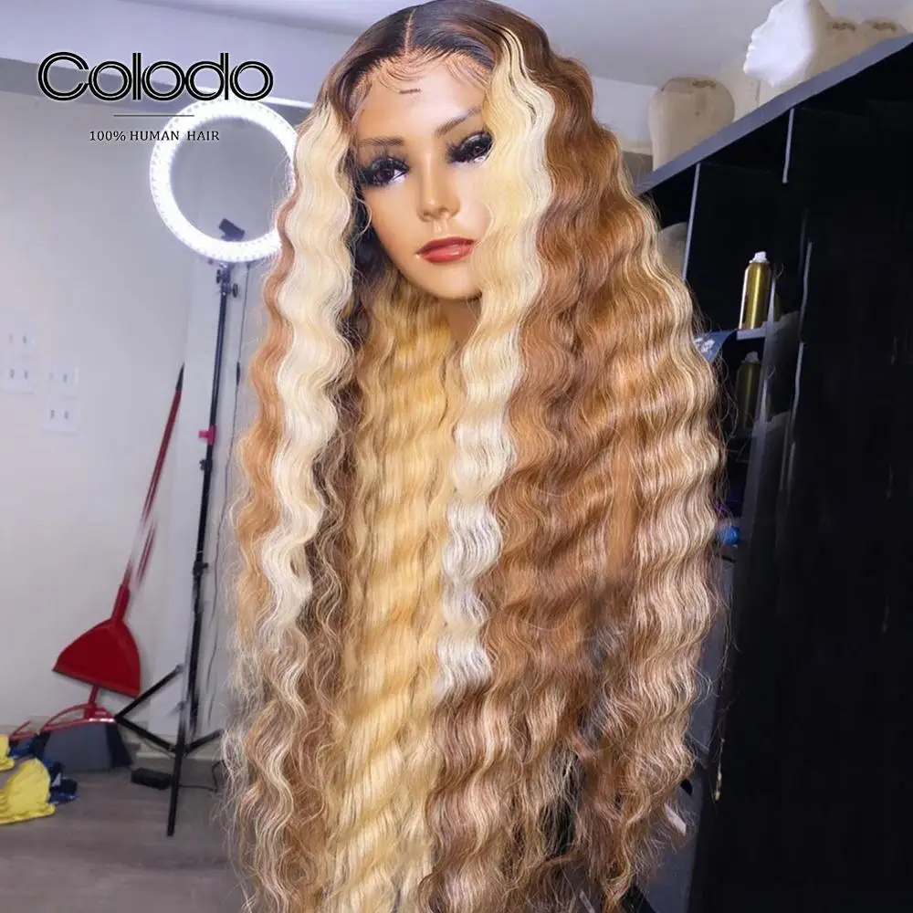 Цвет колодо блонд фортепиано цвет человеческих волос парики предварительно выщипывания глубокая волна парик бразильский