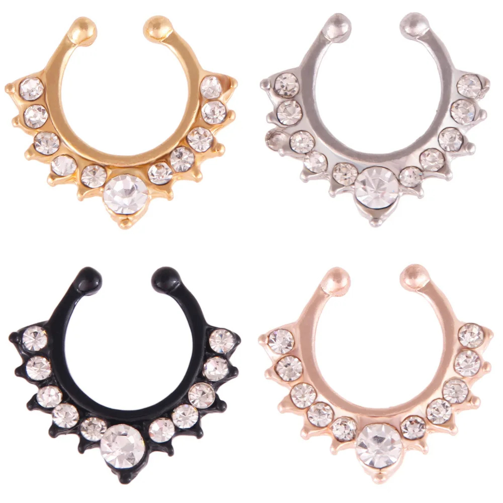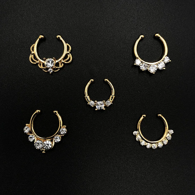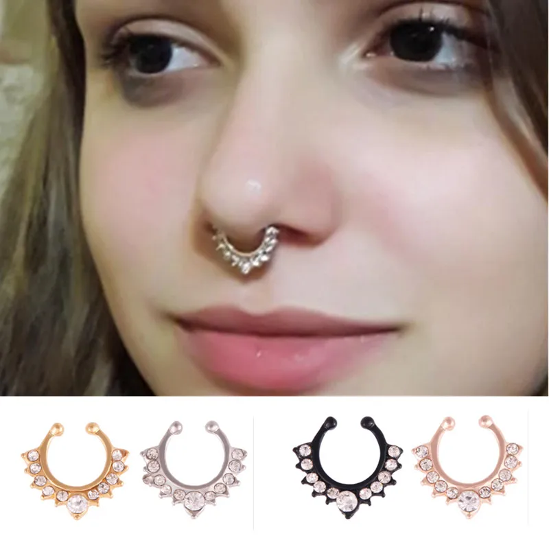 1 шт. пирсинг носа из нержавеющей стали с цирконием, поддельный пирсинг носа, промышленные женские аксессуары для украшения тела Септум