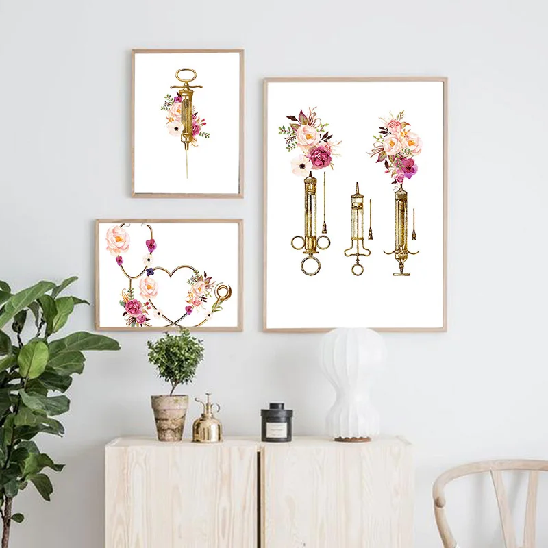 HD Печать на холсте картина в скандинавском стиле стетоскоп шприц цветок картина на стену модульный Творческий постер Декор для дома гостиной