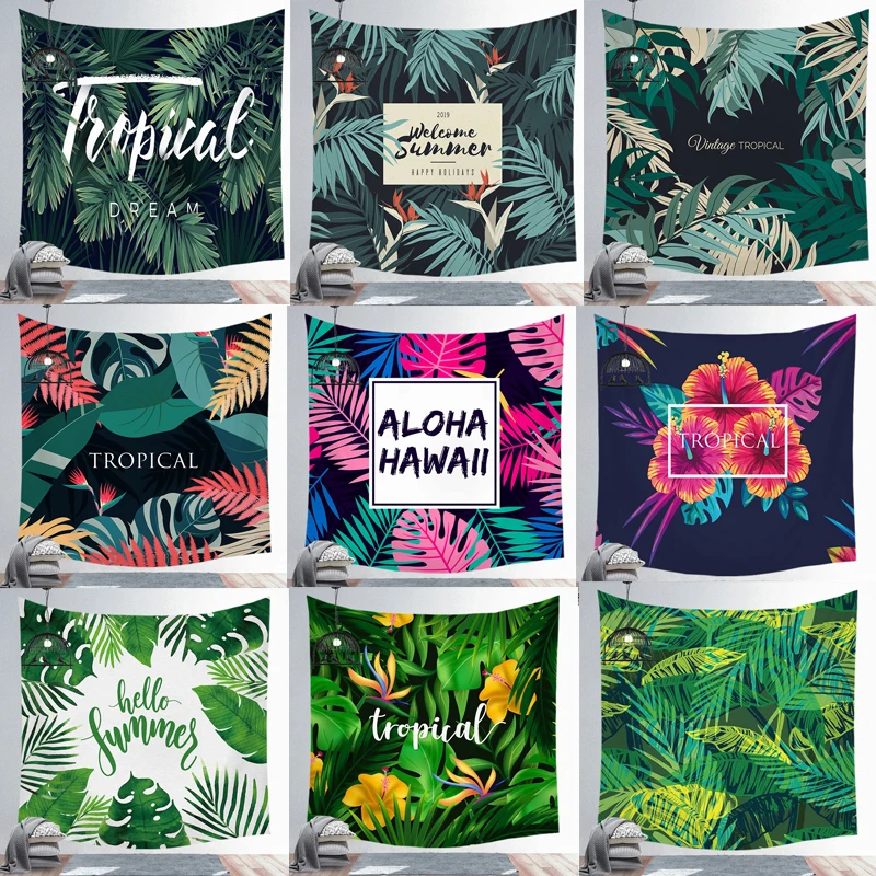 Настенный гобелен с тропическим растительный гобелен, из полиэстера, в богемном стиле, кактус, банановый лист, цветочный принт, пляжное полотенце, подушка