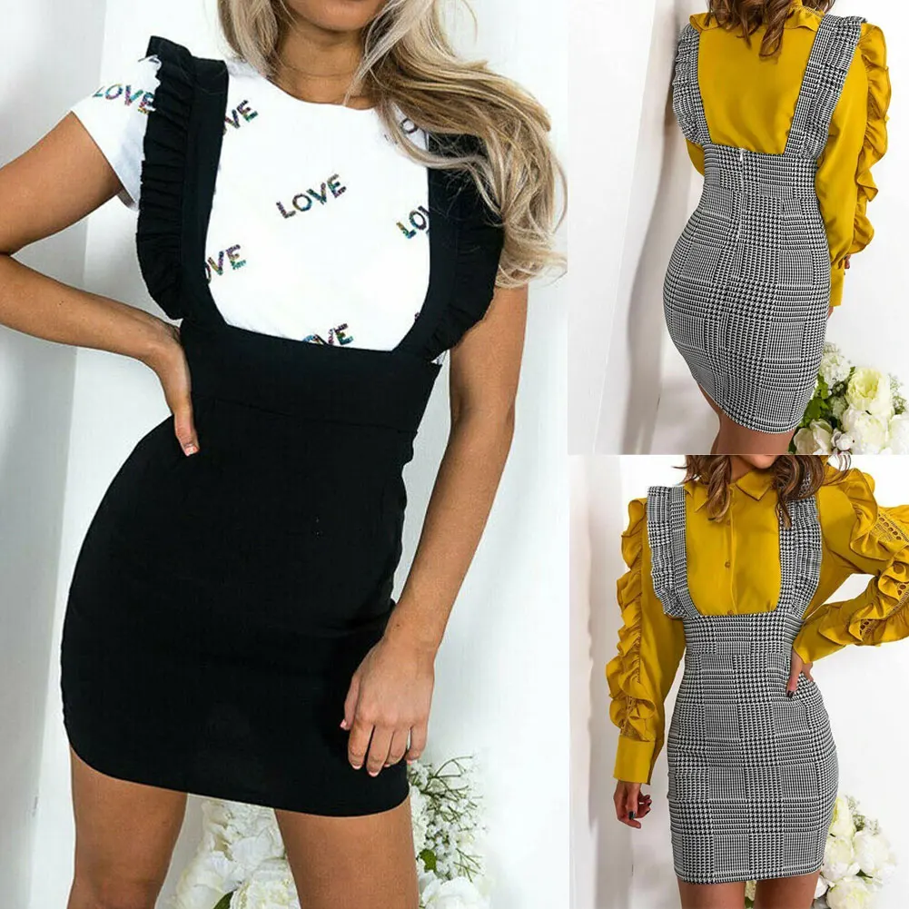 Женская облегающая юбка на лямках, Офисная облегающая юбка с лямками из твида, для лета