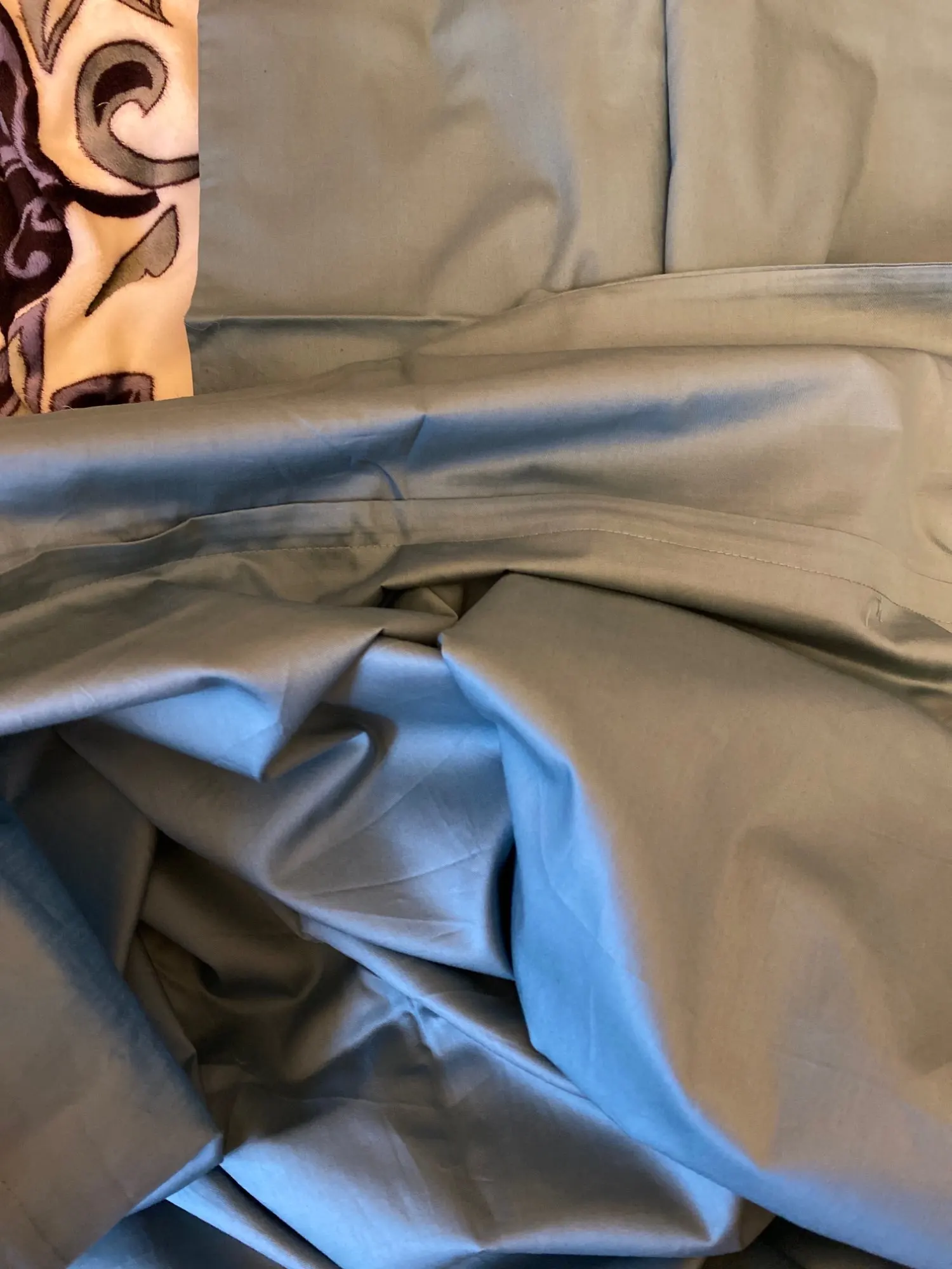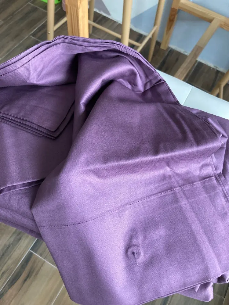Очень хорошее постельное белье, швы ровные, нитки не торчат. Пододеяльник - на молнии, она вшита не по шву, а на расстоянии сантиметров 15 от края. Наволочки на пуговицах. В составе хлопок, ткань чуть жестковата, но всё комфортно. Цвет - это особая любовь... Глубокий оттенок, очень красиво. Телефон не передаёт (либо слишком темным показывает, либо слишком ярким).