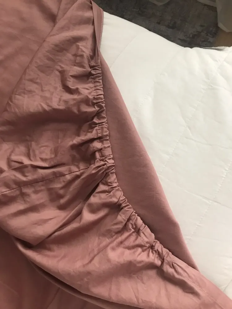 Цвет отличается от картинки продавца. Ткань грубовата, нет гладкого эффекта. Лицом на подушке не особо приятно лежать. После первого использования очень помялось. До Санкт-Петербурга шло 2 месяца. Просила сделать простыть по размеру на резинке. Добавили резинку только по углам.
