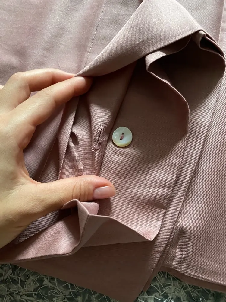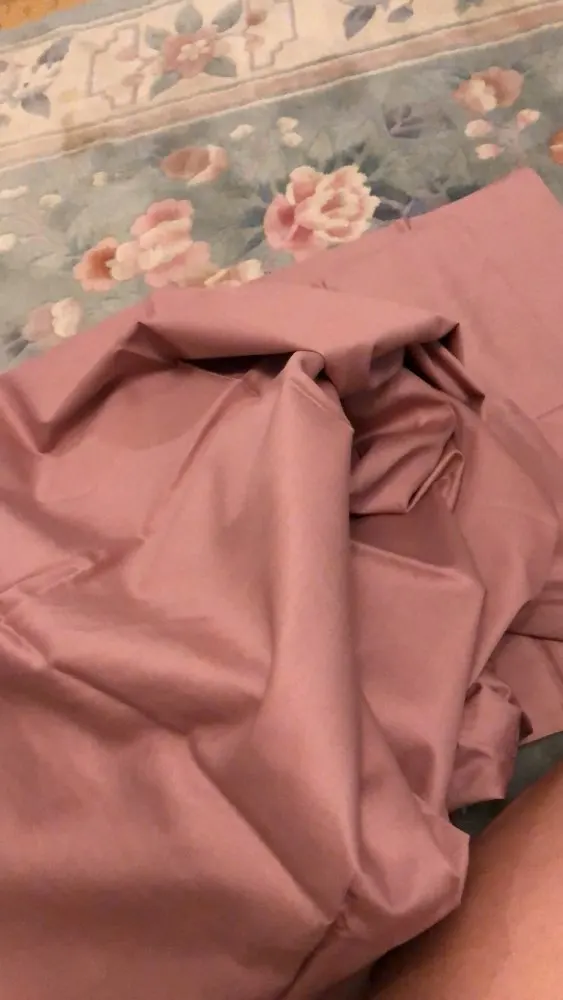Красивый приглушенный оттенок розового, как на фото. Ткань приятная на ощупь, швы ровные и аккуратные. Доставка в Чехию буквально за 2 недели, привез курьер. Хорошо упаковали посылку, в 2 слоя пакетов)
