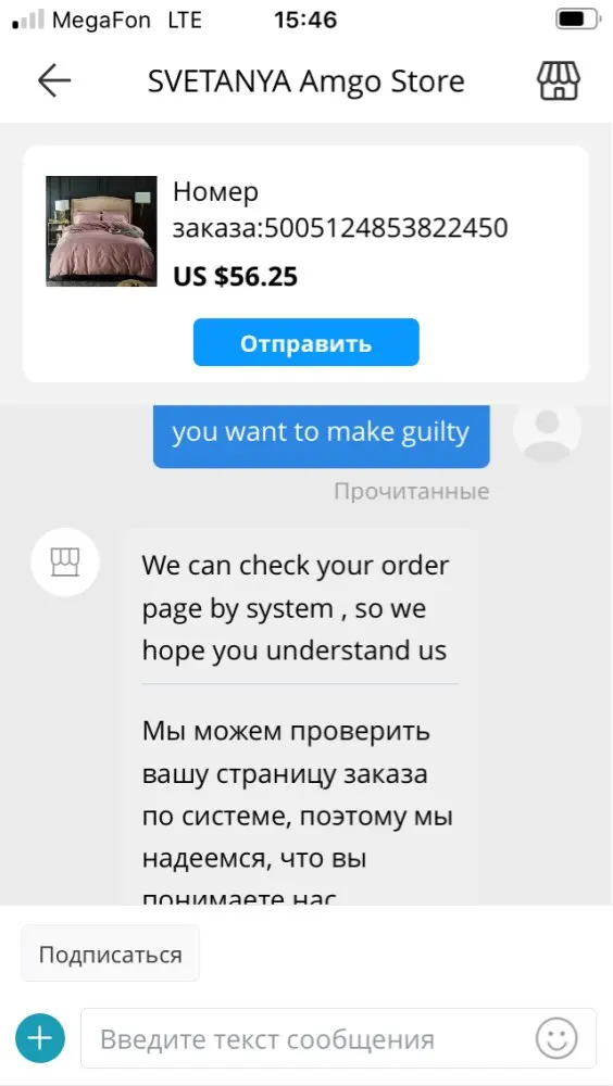 Если честно, после переписки с продавцом, хотела поставить 1 звезду, настолько сильно он попортил мне настроение, нервы и время. Я заказала семейный комплект с простыней на резинке, в описании был указан 1 размер простыни - 160х200х25. В итоге получила простыню 150х200х25. Попыталась натянуть ее на кровать, но она явно мала. Написала продавцу, он предложил мне открыть спор и получить компенсацию. Я открыла спор на 1000₽ (комплект стоил 4100). Продавец проигнорировал его, алиэкспресс решил спор в мою пользу. Дальше началось веселье. Продавец стал писать мне кучу сообщений с требованием сфотографировать свою кровать с этой простыней (вероятно посчитал меня обманщицей), потом стал писать, что размеры в заказе были указаны именно 150см у простыни. Требовал, пройти по ссылке своего заказа и прислать им скрин, грозя, что они могут сами посмотреть всю эту информацию. В общем какой-то кошмар в переписке начался. На самом деле в заказе тоже стоит ширина простыни 160см.