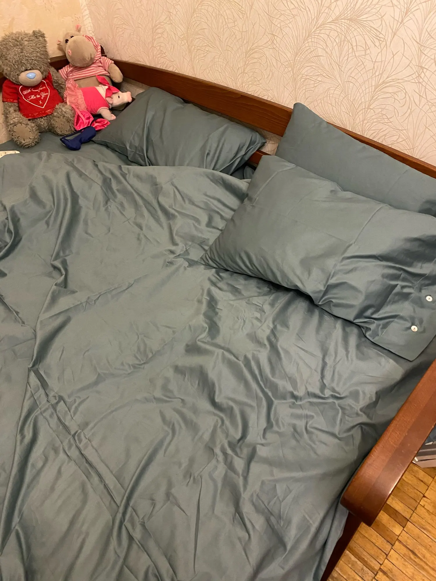 Я в восторге, мне кажется это самая лучшая моя покупка на али! Постельное белье шикарное, очень приятное! Все шовчик ровные, на матрас резинка села как влитая, шикарно держится. Все продуманно: наволочки на пуговичках, пододеяльники на молниях. В общем космос, ещё и за такую цену! Единственное было бы здорово, если бы у продавца была возможность выбрать квадратные наволочки, потому что сейчас наволочки евро ( вытянутые), но даже это совсем ерунда, сели и на квадратные подушки, так что не проблема. В общем всем советую, а продавцу большое спасибо! P.s: фото плохо передаёт цвет, он более насыщенный