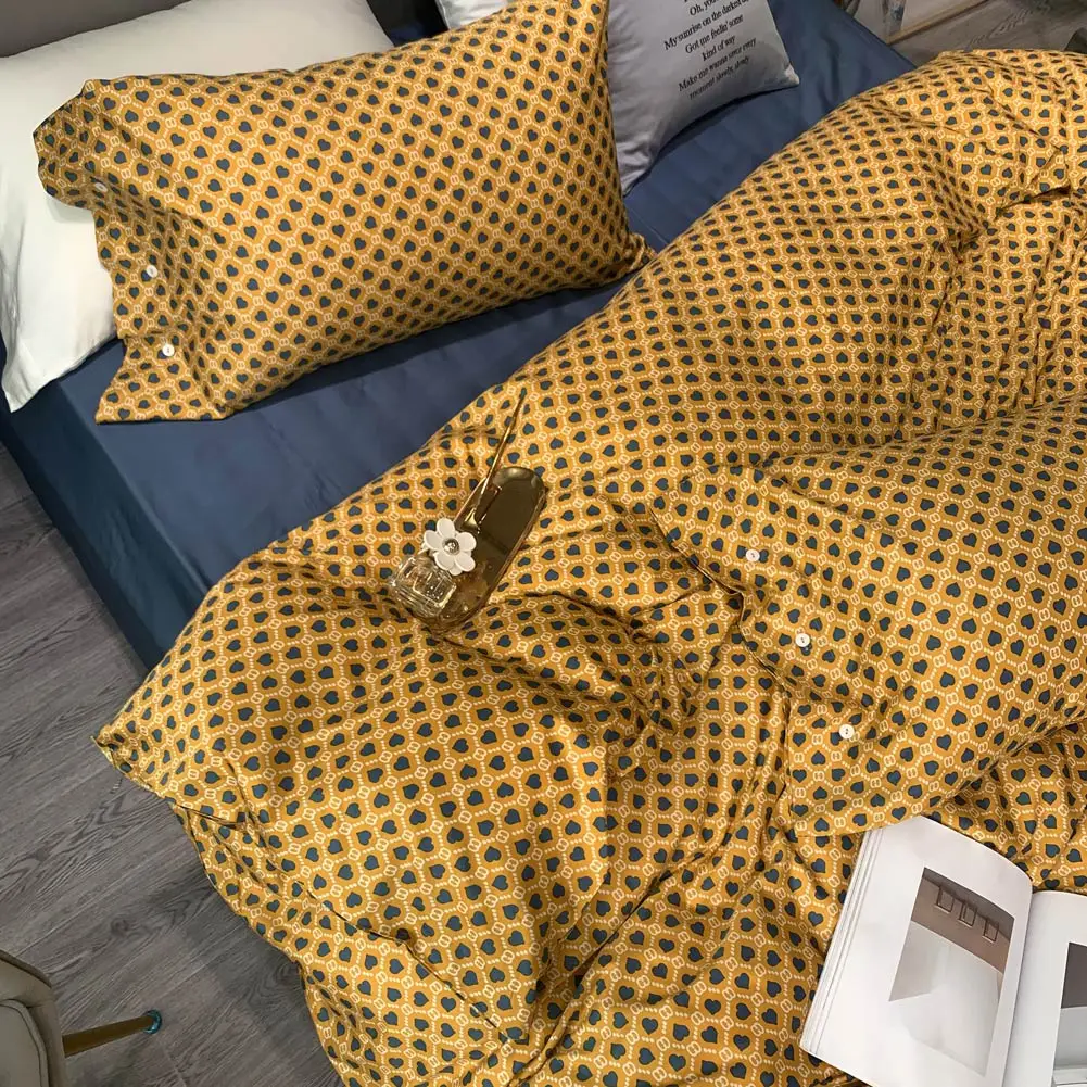 Svetanya скандинавский желтый геометрический Египетский хлопковый сатиновый Комплект постельного белья королевского размера натяжная простыня, постельное белье Комплект пододеяльника