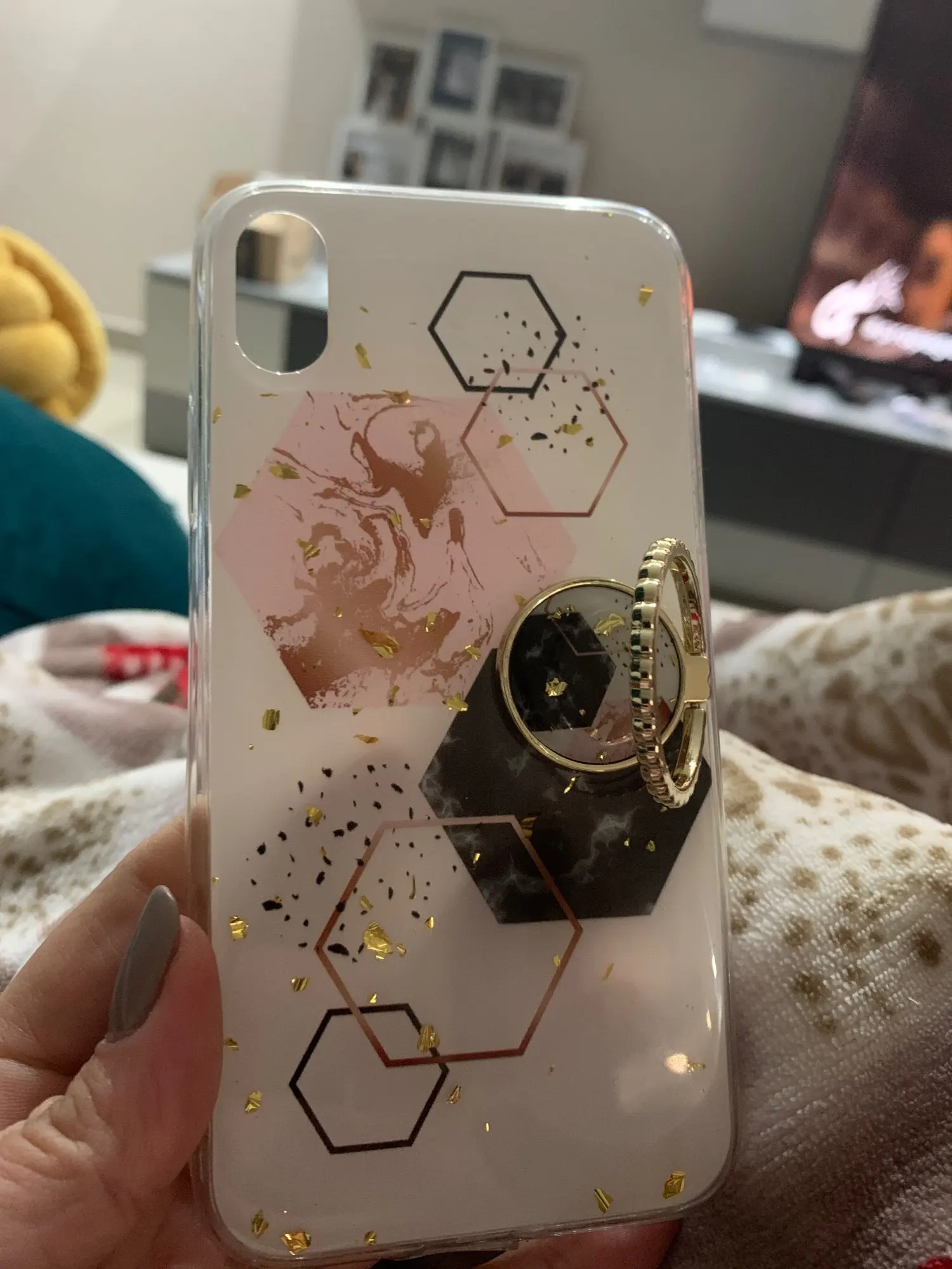 Чехол отличный! По рисунку видно, что это просто распечатанная картинка под силиконом, но что я собственно ждала за такие деньги. Попсокет прекрасный! Удобнее этого у меня ещё не было. Смотрится на пальце очень стильно!