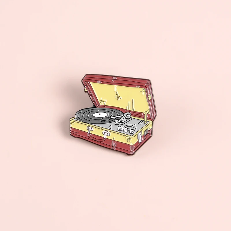 Ретро виниловая запись эмалированная булавка 80-й чемодан граммофон...