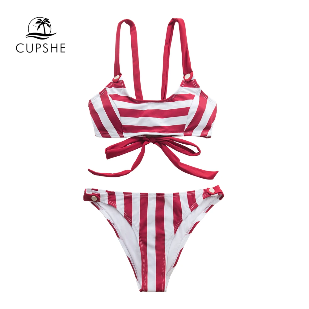 CUPSHE комплект бикини с красными и белыми полосками на пуговицах, женские сексуальные купальники со шнуровкой, купальники из двух частей 2020, пляжные купальники