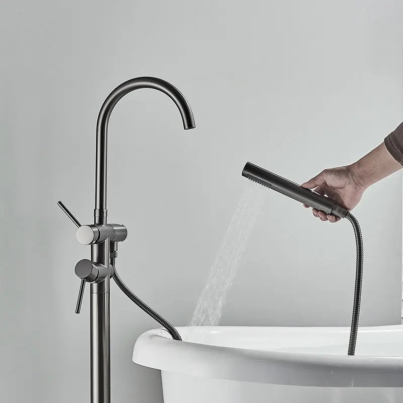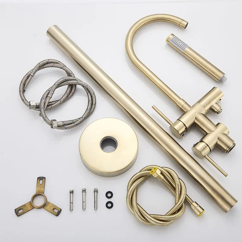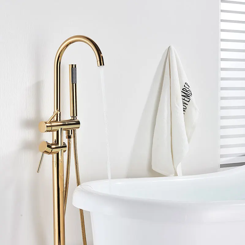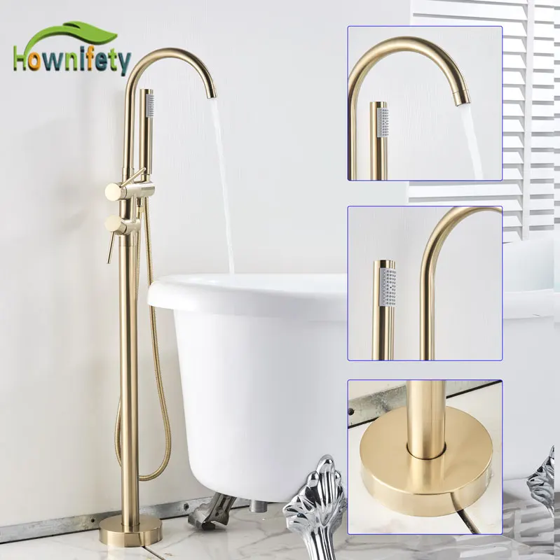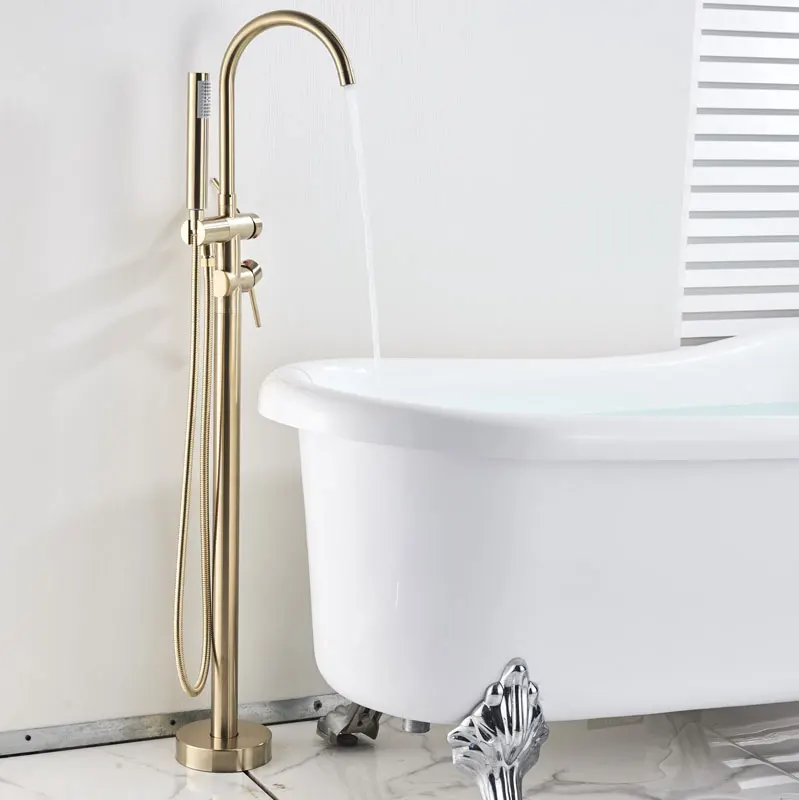 Матовый золотой пол ванной комнаты смеситель с подставкой, кран с одной ручкой, рассеивание на 360 градусов с ABS, ручная Лейка для душа