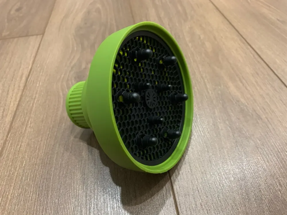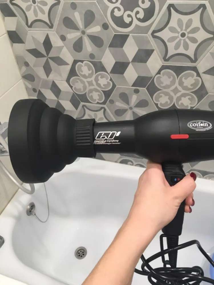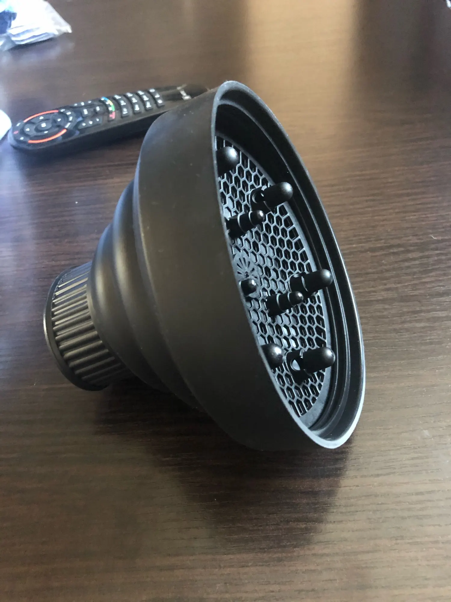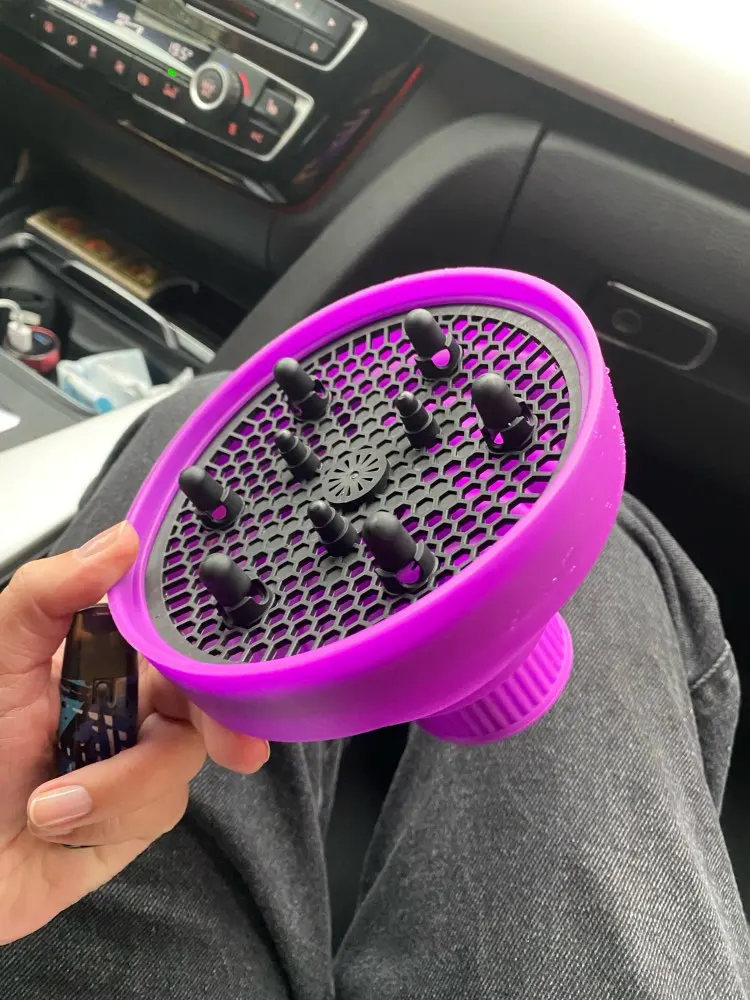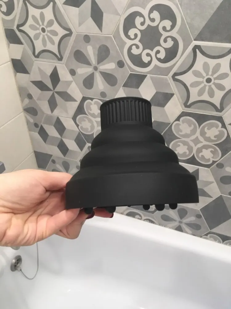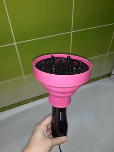Продукт действительно отличный! У меня очень тонкие вьющиеся волосы, и этот диффузор делает мои волосы больше! Этот объем потрясающий. На самом деле он работает лучше, чем мой оригинальный диффузор от сушилки. Его немного сложнее использовать, потому что силикон время от времени закрывается, но результаты Потрясающие!