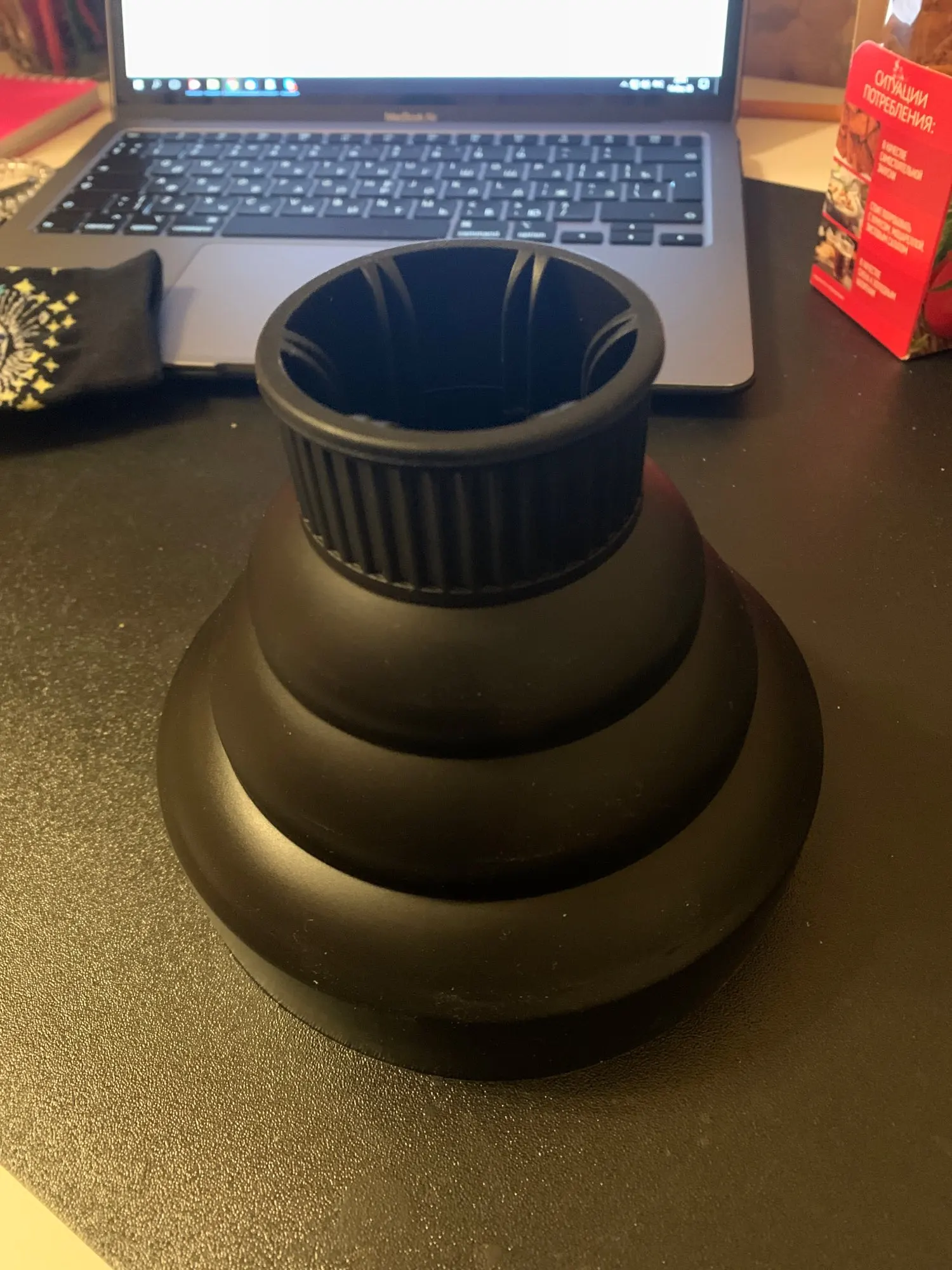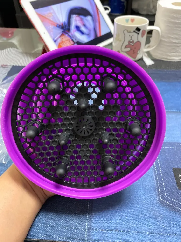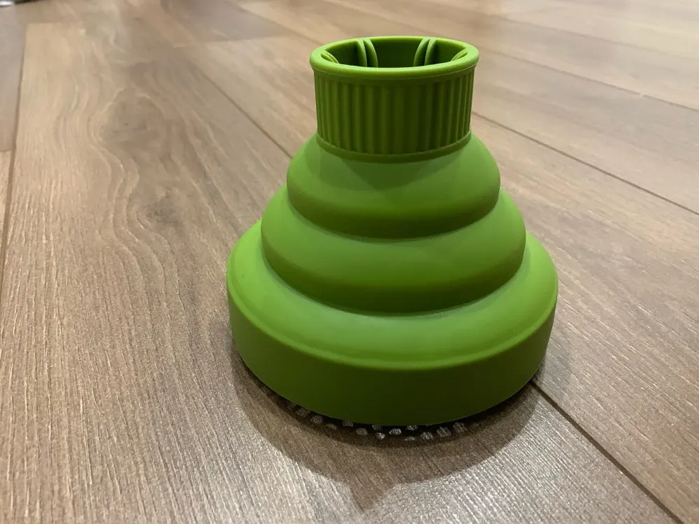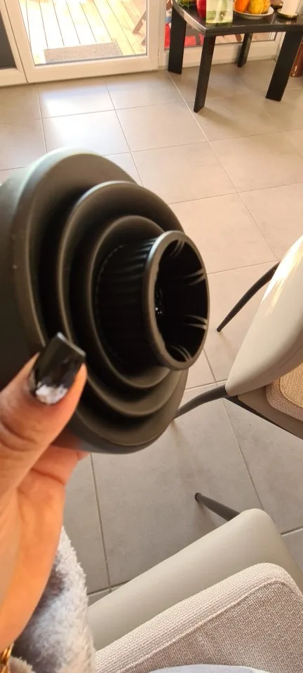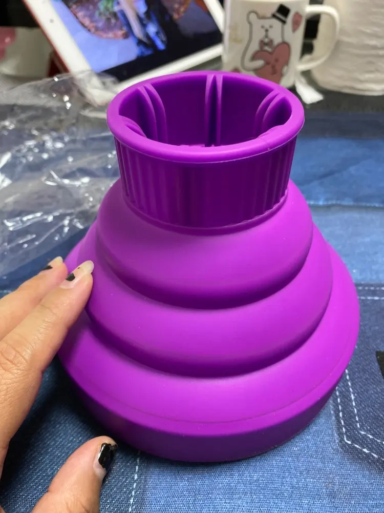 Продукт действительно отличный! У меня очень тонкие вьющиеся волосы, и этот диффузор делает мои волосы больше! Этот объем потрясающий. На самом деле он работает лучше, чем мой оригинальный диффузор от сушилки. Его немного сложнее использовать, потому что силикон время от времени закрывается, но результаты Потрясающие!