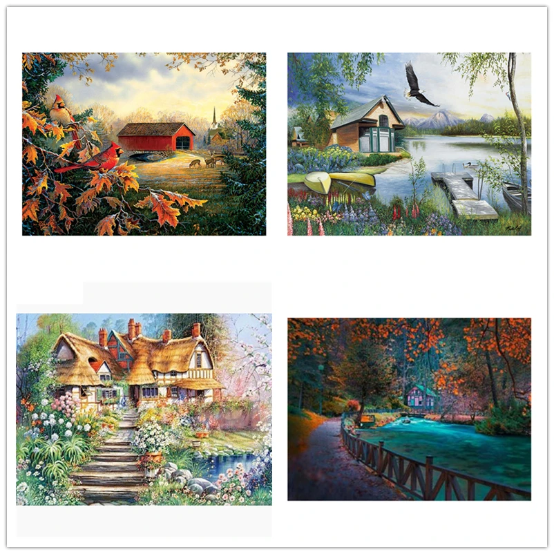 Алмазная вышивка LIPHISFUN, пейзаж, домик в лесу, озеро, алмазная живопись, вышивка крестиком из смолы, квадратныйкруглый Декор для дома