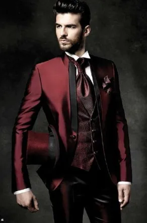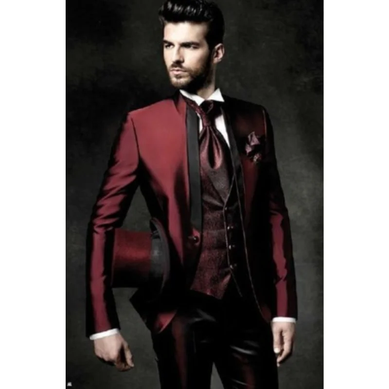 Высококачественные темно-красные смокинги для жениха на одной пуговице мужские свадебные костюмы для жениха для выпускного вечера (пиджак + брюки + жилет + галстук)