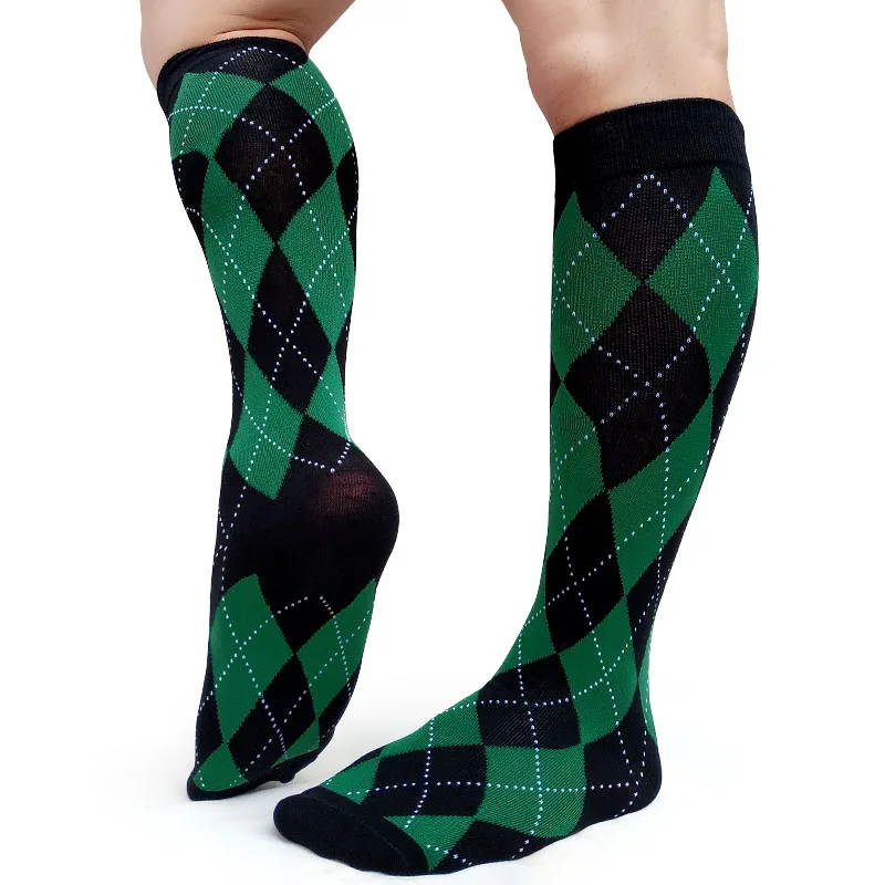 Клетчатые Длинные мужские носки до колена, пикантное официальное платье, высококачественные гей-фетиш, хлопковые чулки, мужские носки, мягкие и удобные носки