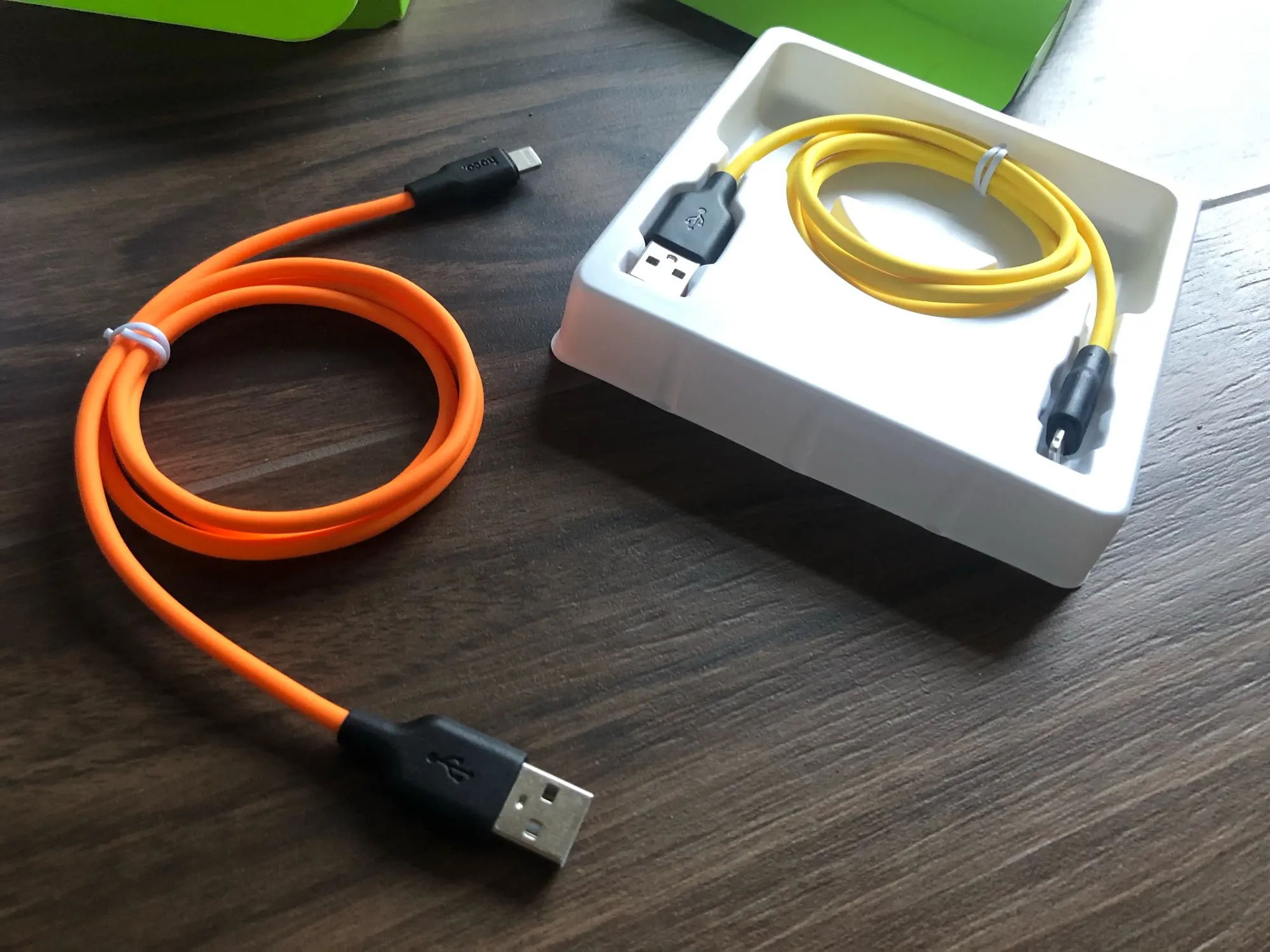 Мягкие провода, без запаха химии. iPhone спокойно заряжается. Брал красные чтобы легко можно было найти в куче вещей