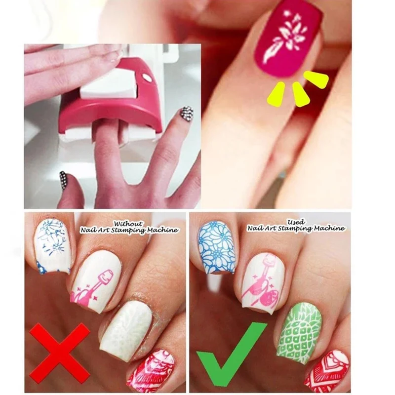 Милый и милый дизайн, простота в эксплуатации, без батарей, без проводов. Поставляется с 6 металлическими тарелки с рисунком. Точный контроль позиционирования. С присоской на дне, машина может быть надежно закреплена на вашем столе/столе. Отметьте, что вам нравится в течение минуты. Наслаждайтесь своими руками и красивыми ногтями.