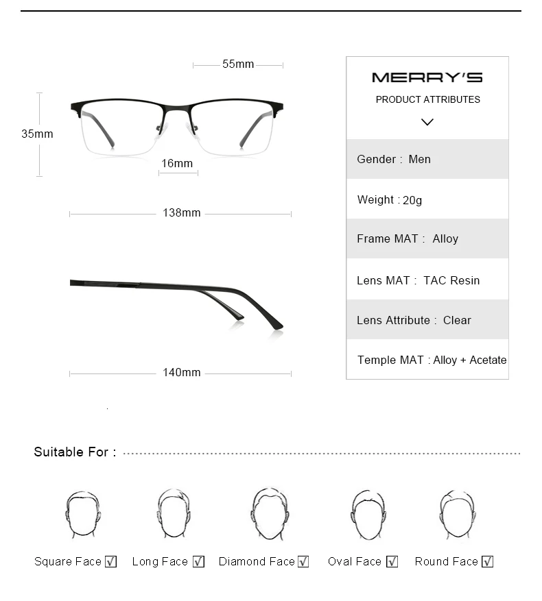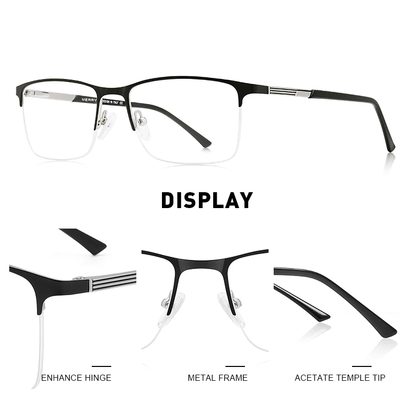 Мужские Оптические очки merry's в полуоправе, квадратные очки для коррекции близорукости, в деловом стиле, S2062PG