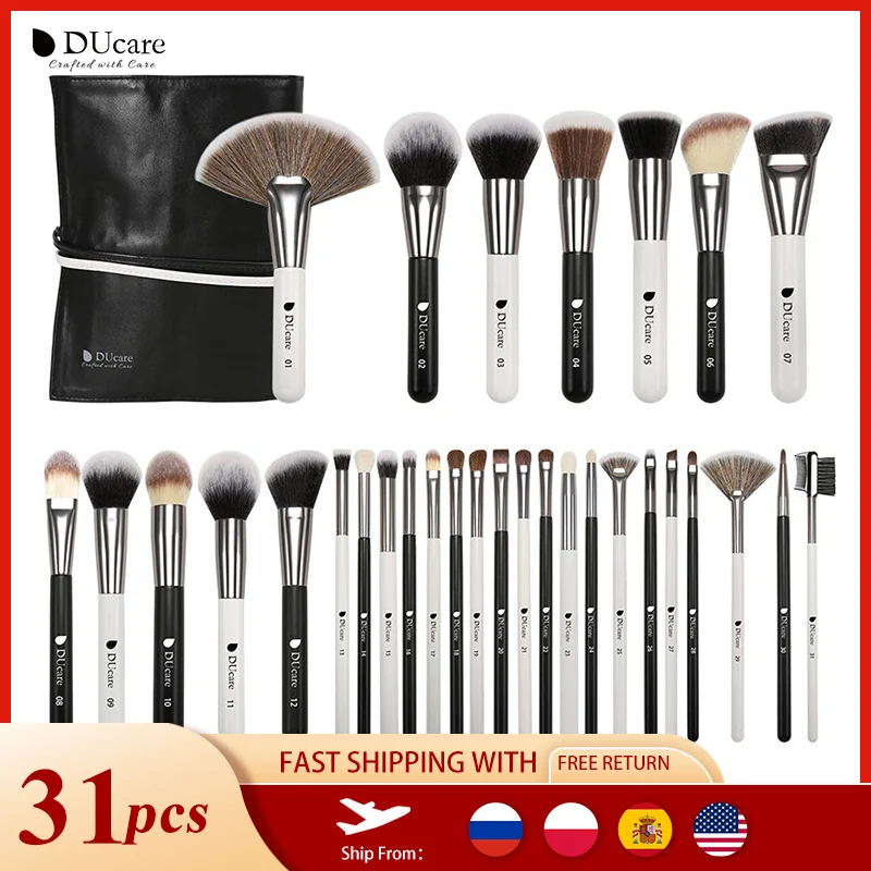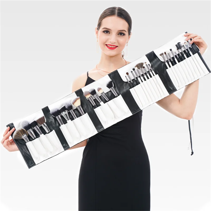 Кисти для макияжа, из натуральной козьей шерсти, черного и белого цветов