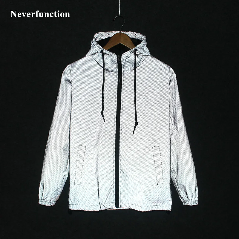 Осенняя Мужская Ночная Светоотражающая ветровка, свободная куртка с капюшоном, Мужская Уличная Хип-хоп Водонепроницаемая Повседневная бейсбольная куртка