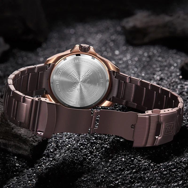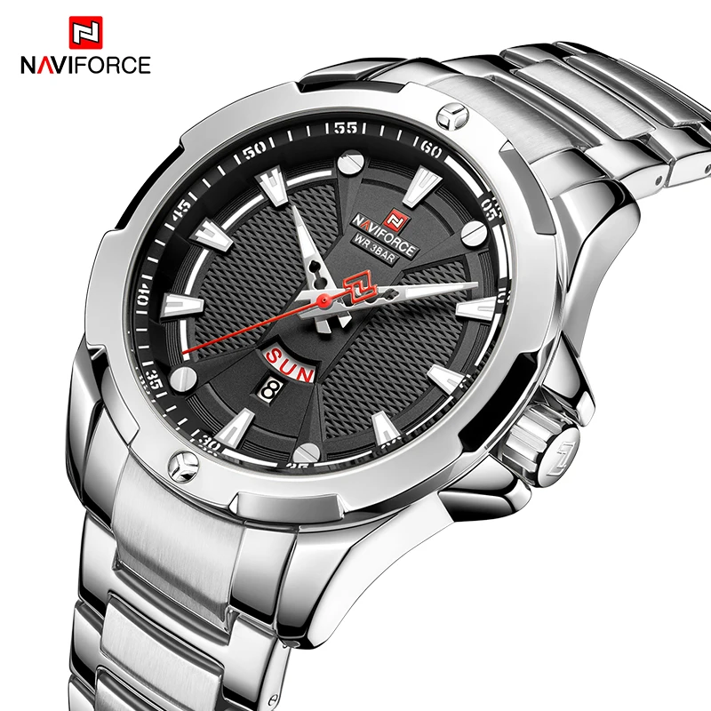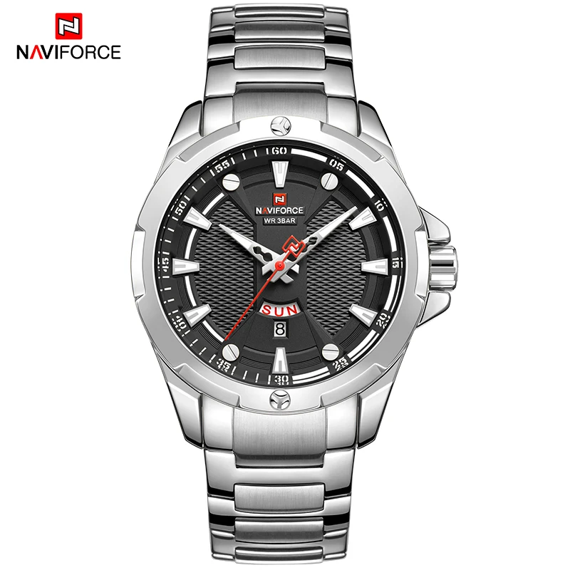 Часы наручные NAVIFORCE мужские Кварцевые полностью стальные, роскошные брендовые деловые водонепроницаемые