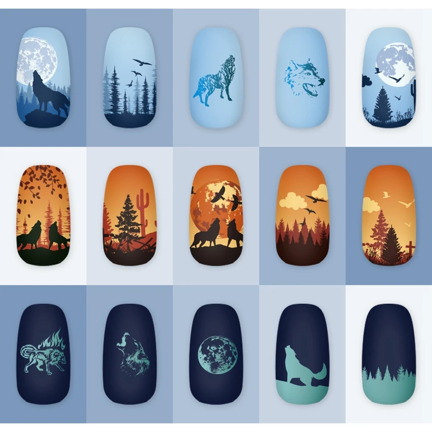 Шаблоны тиснения ногтей Wolf Full Moon Wild Goose, шаблоны тиснения...