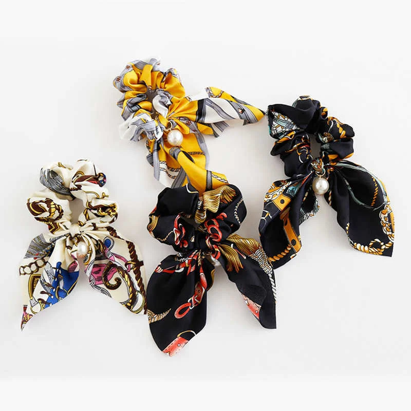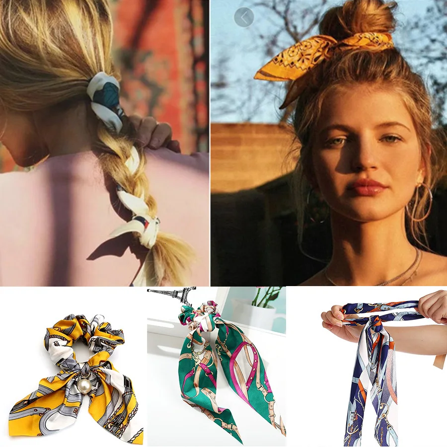 Модные резинки для волос с цветочным рисунком, длинный хвост, шарф,...
