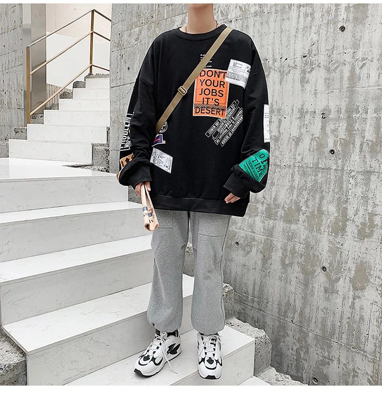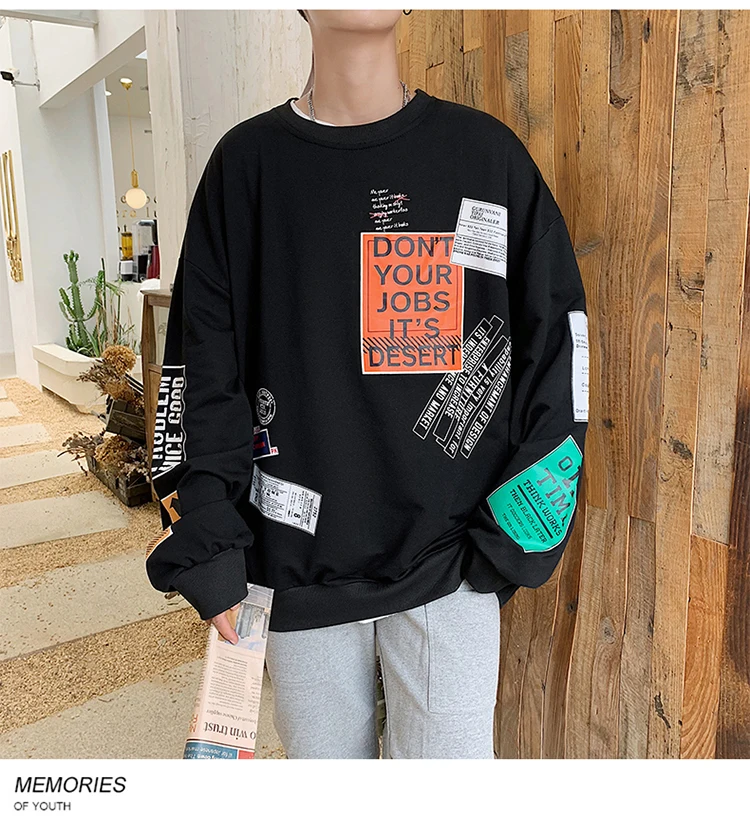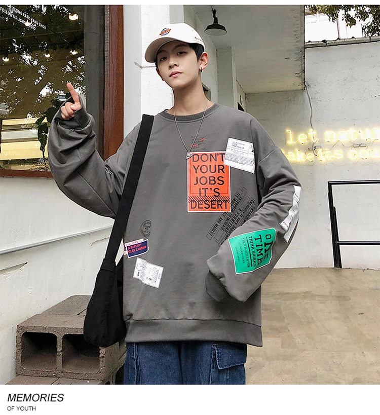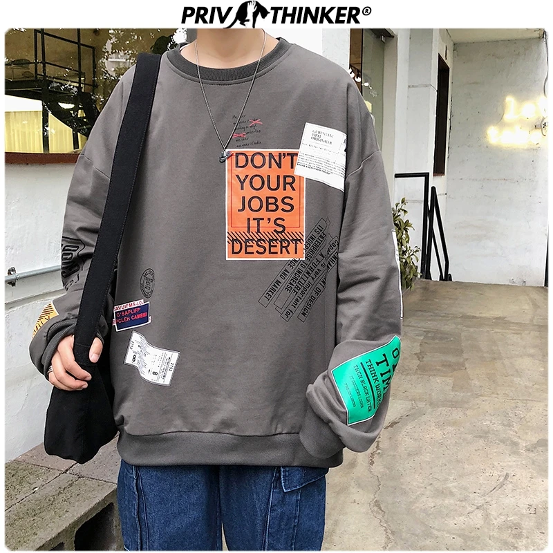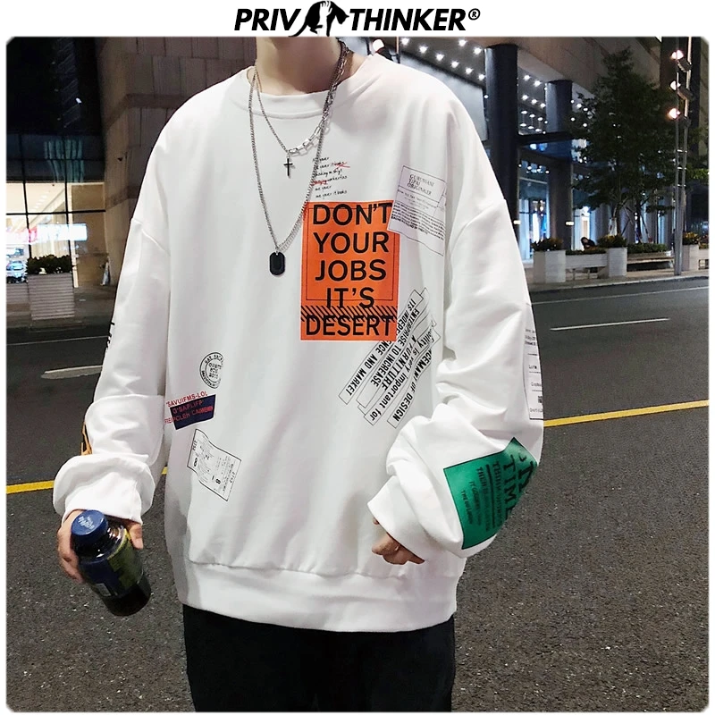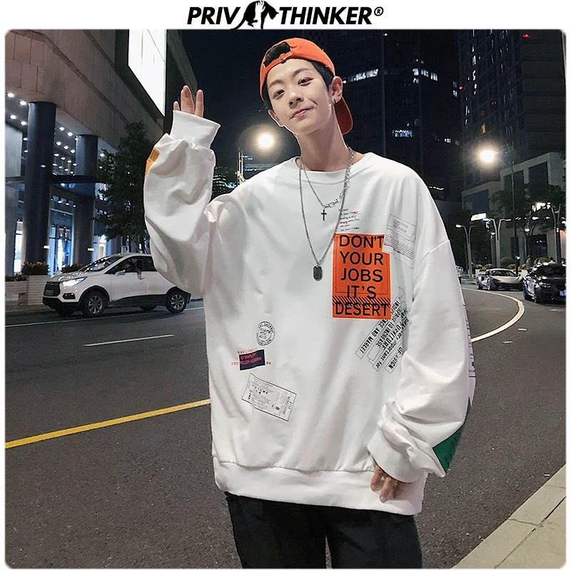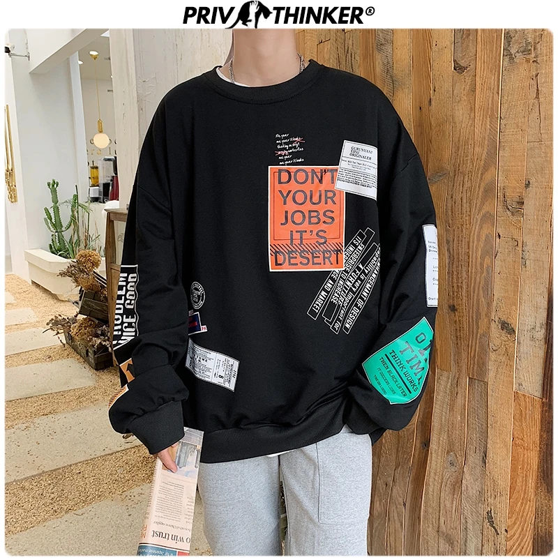 Privathinker, корейские Лоскутные пуловеры с круглым вырезом, мужские свитшоты, осень 2020, уличная одежда с принтом, мужская толстовка с длинным рукавом, мужская одежда