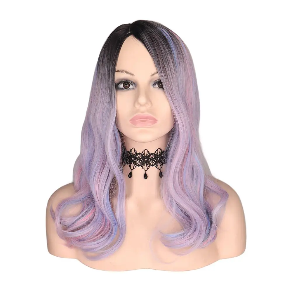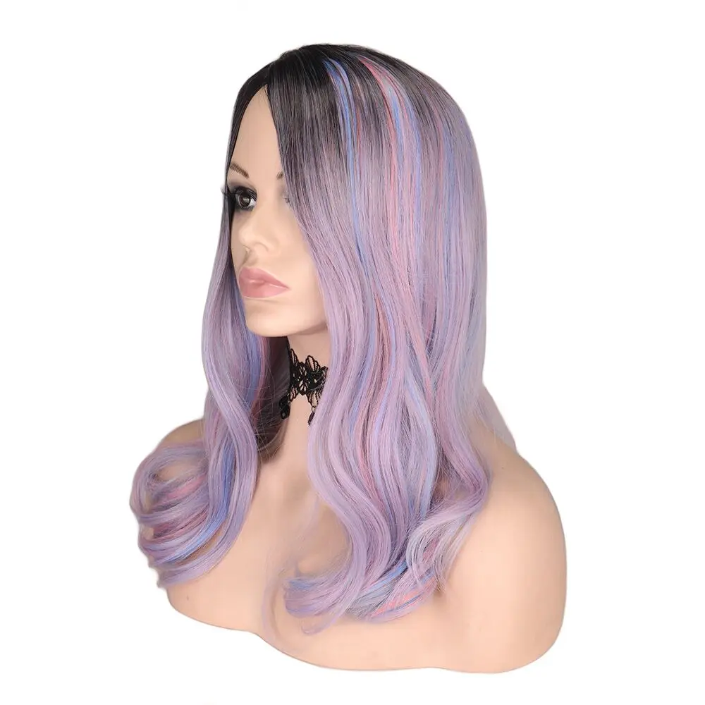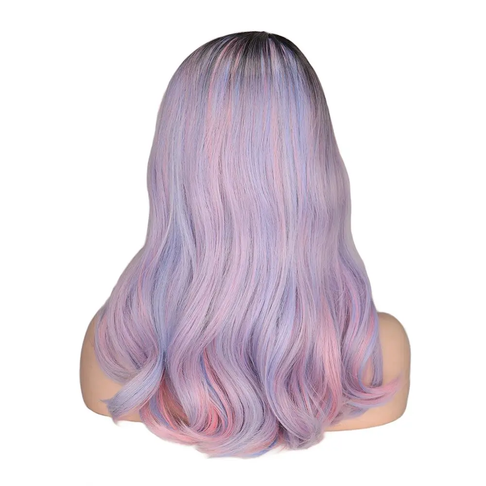 QQXCAIW Средний длинный волнистый парик для женщин, Радуга Фиолетовый Синий Розовый Ombre термостойкие синтетические волосы парики Косплей Вечерние