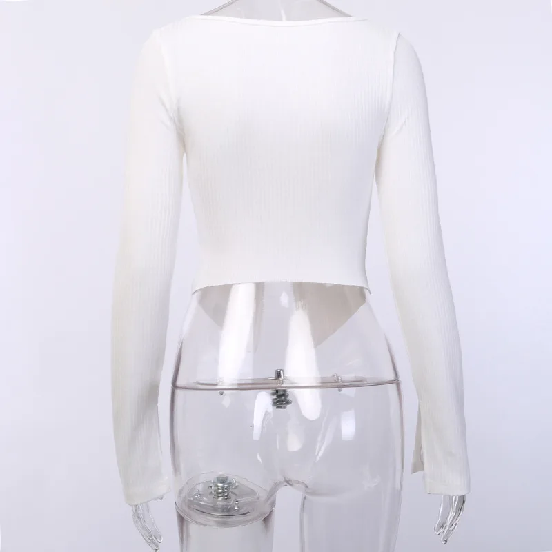 Трикотажные женские топы с V-образным вырезом и длинным рукавом, на молнии