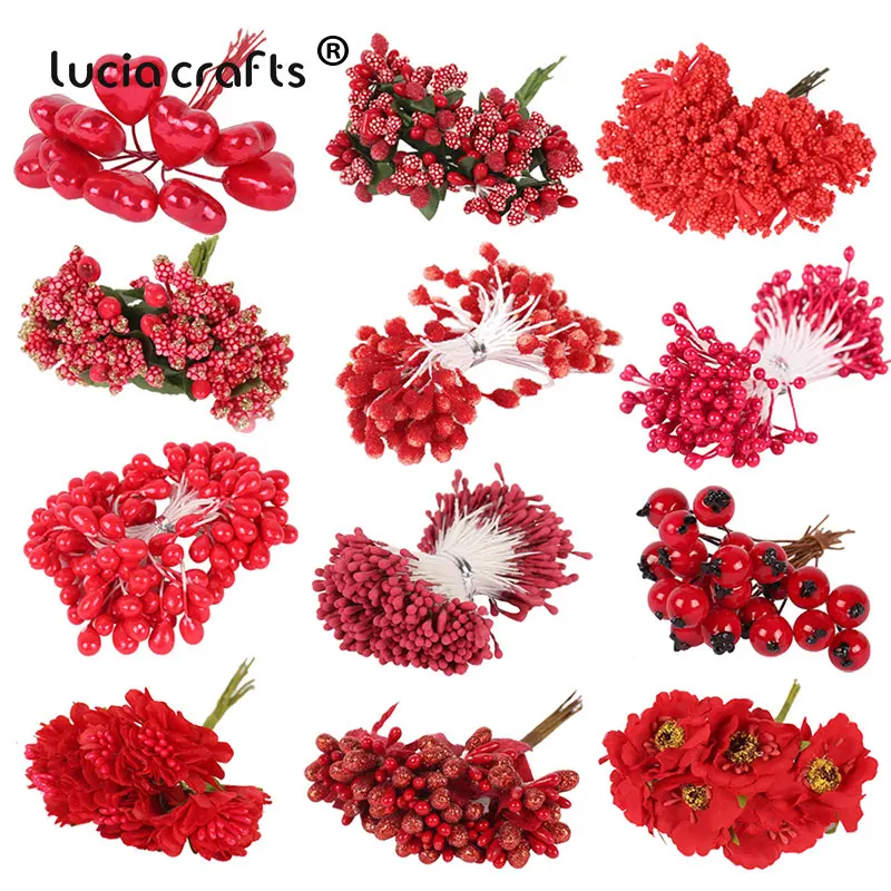 Поделки Lucia, разные искусственные цветы, вишневые тычинки, ягоды, для самостоятельной сборки, Рождественский, Свадебный, Подарочный венок, D0311