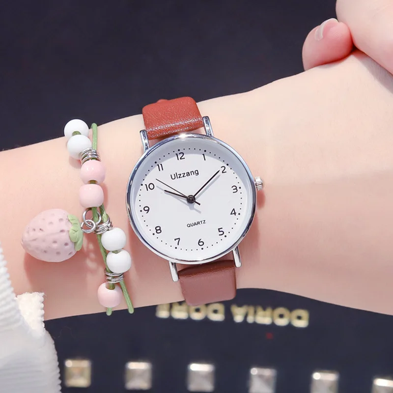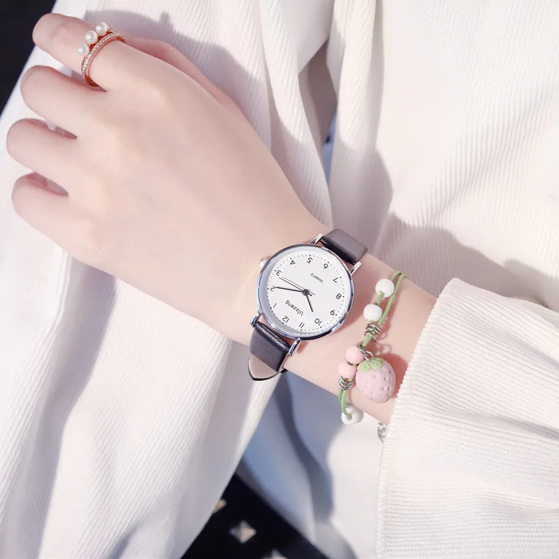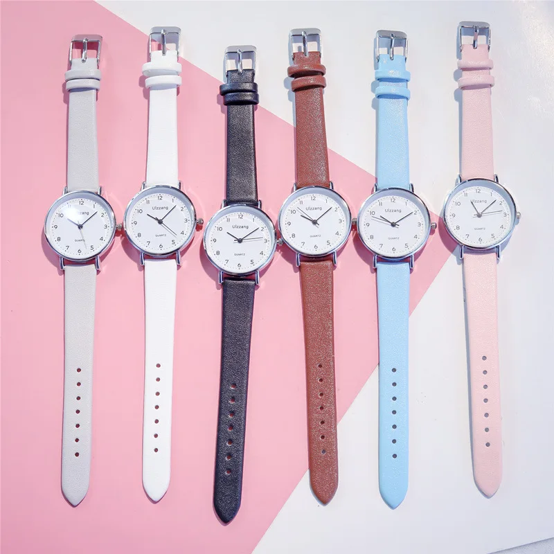 Простые женские белые часы с циферблатом 2021 Ulzzang брендовые модные повседневные женские кварцевые наручные часы с кожаным ремешком
