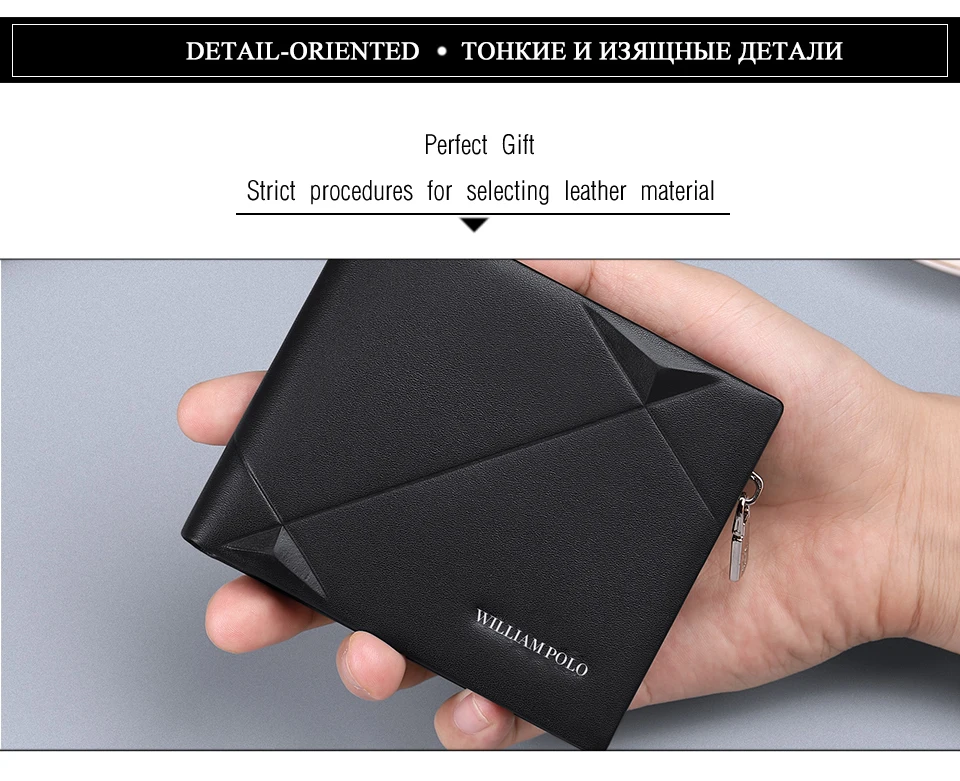 Брендовый кожаный короткий кошелек WILLIAMPOLO для мужчин, бумажник из натуральной воловьей кожи на молнии, оригинальный миниатюрный модный дизайнерский роскошный клатч для мужчин