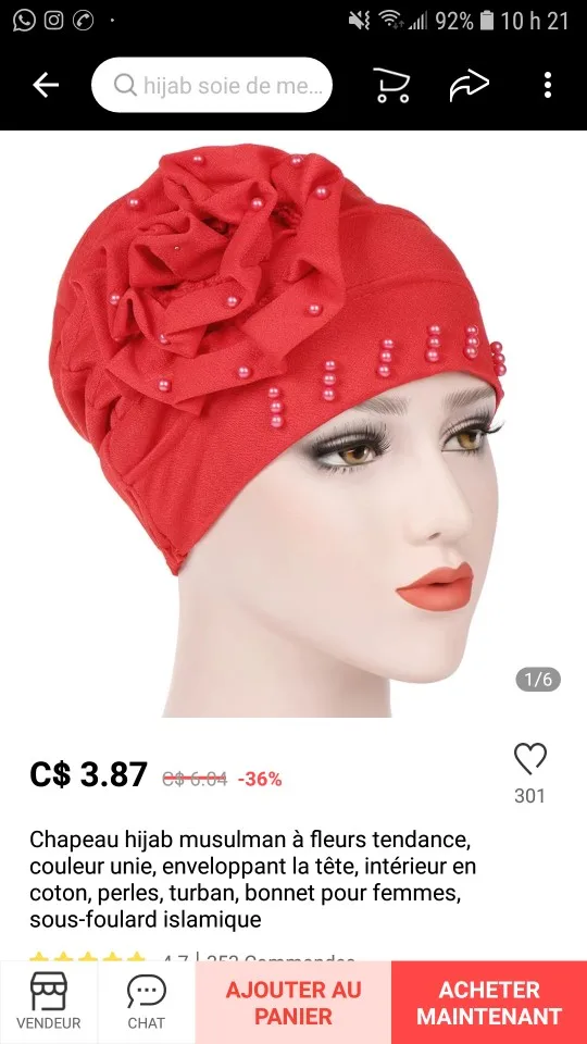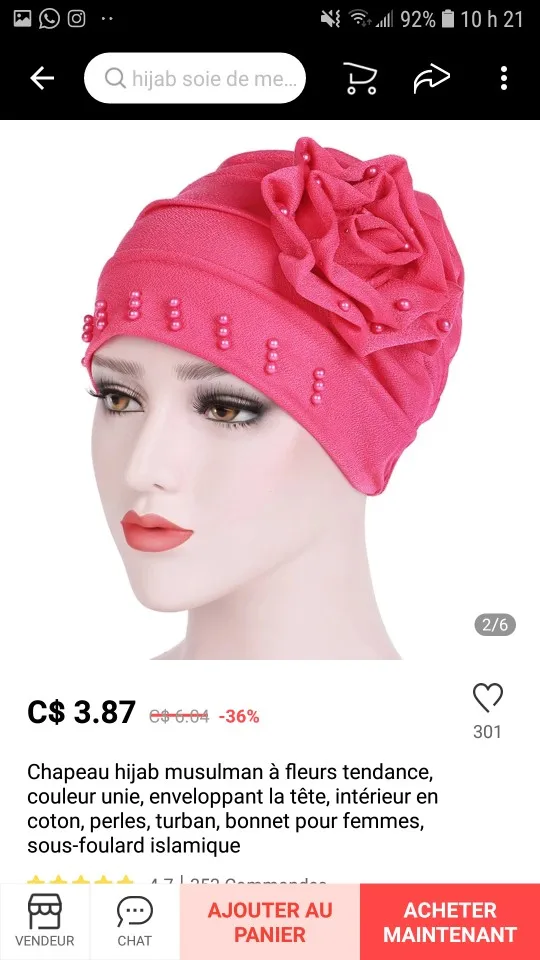 ОЧЕНЬ МИЛАЯ ШАПОЧКА - НАРЯДНАЯ И ОРИГНАЛЬНАЯ. ОСОБЕННО МНЕ ПОНРАВИЛСЯ ЦВЕТ- ЛИЛОВО-СИРЕНЕВЫЙ. И ДАЖЕ ЦВЕТОК НА БОКУ НЕ КАЖЕТСЯ ВЫЗЫВАЮЩИМ. ТКАНЬ ХОРОШО РАСТЯГИВАЕТСЯ. ЭТО СИНТЕТИКА. МУСУЛЬМАНСКИМ ХИДЖАБОМ ЭТО ИЗДЕЛИЕ НАЗВАТЬ ТРУДНО. ПРОДАВЦУ ЗА КАЧЕСТВЕННЫЙ ТОВАР 5 ЗВЕЗД! С БЛАГОДАРНОСТЬЮ ТАТЬЯНА ИЗ ЕКАТЕРИНБУРГА