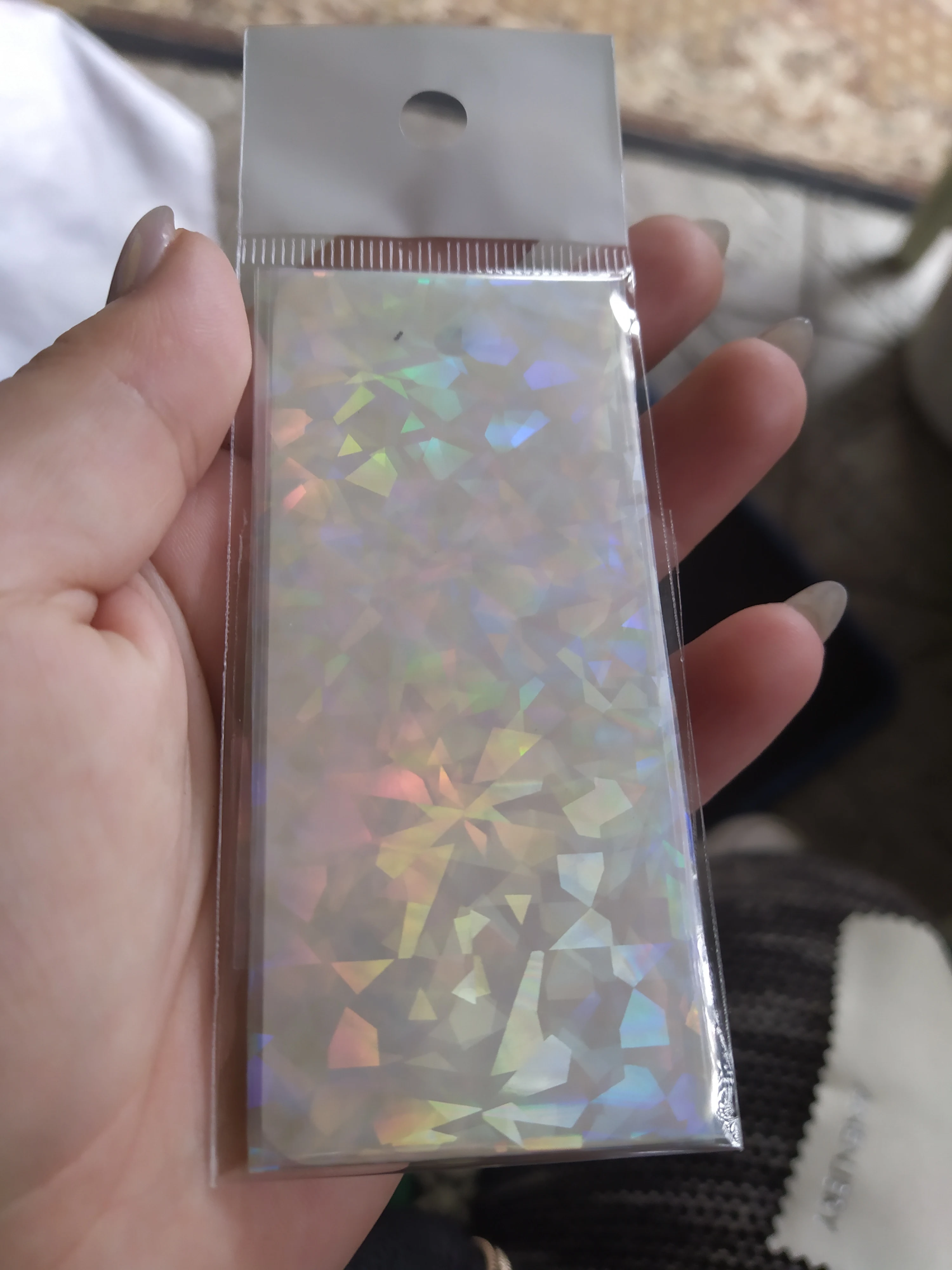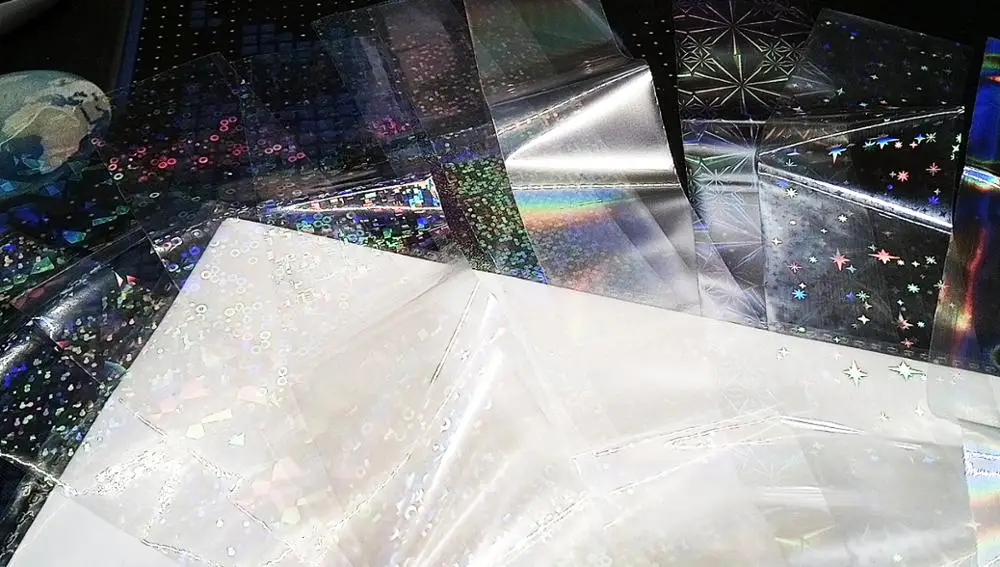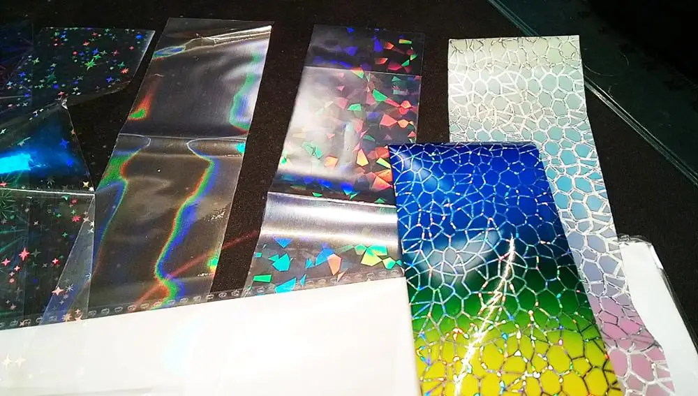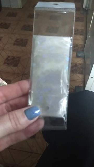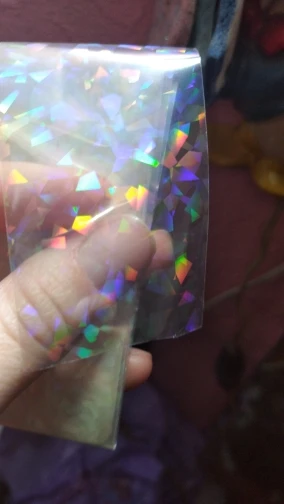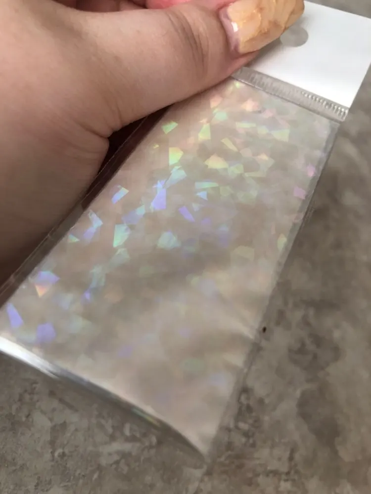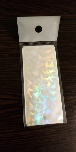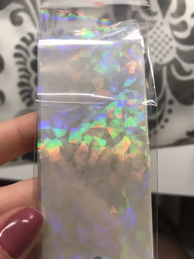 Отличная фольга! Прекрасно отпечатывается на липкий слой гель лака. Красиво искрится и переливается. взяла и набор из 10 шт и одну метровую. Очень довольна.