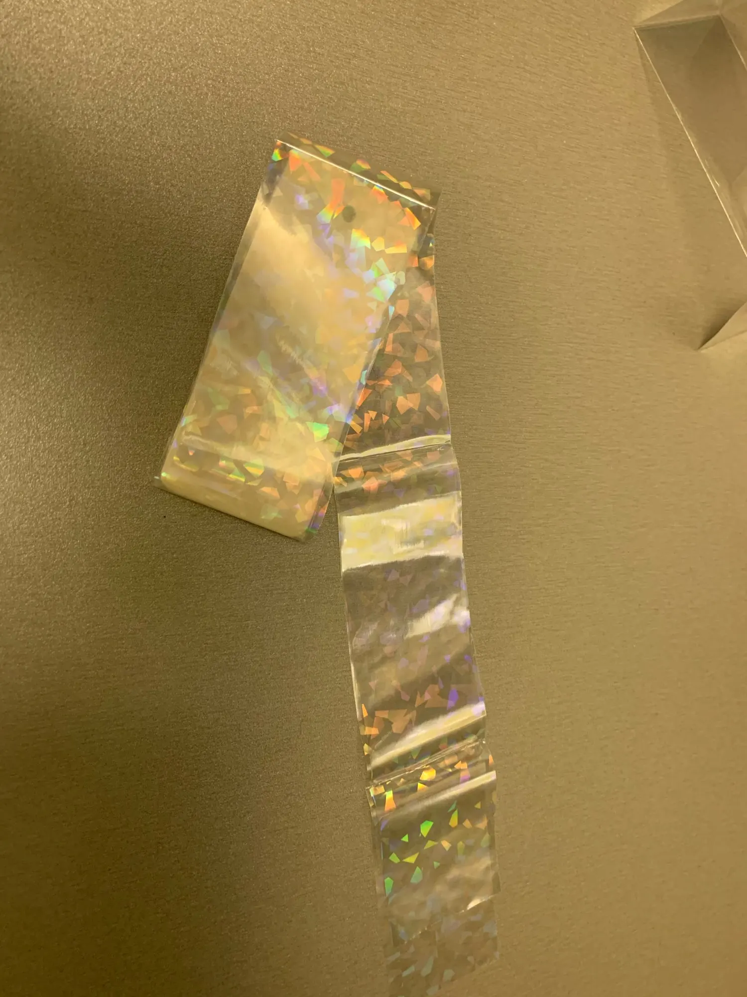 Очень прост в использовании. Вам также не нужно много для каждого ногтя, один рулон прослужит некоторое время. Выглядит отлично в реальной жизни-он очень тонкий в темноте, но под солнечным светом он красиво блестит.