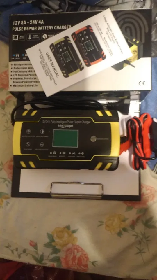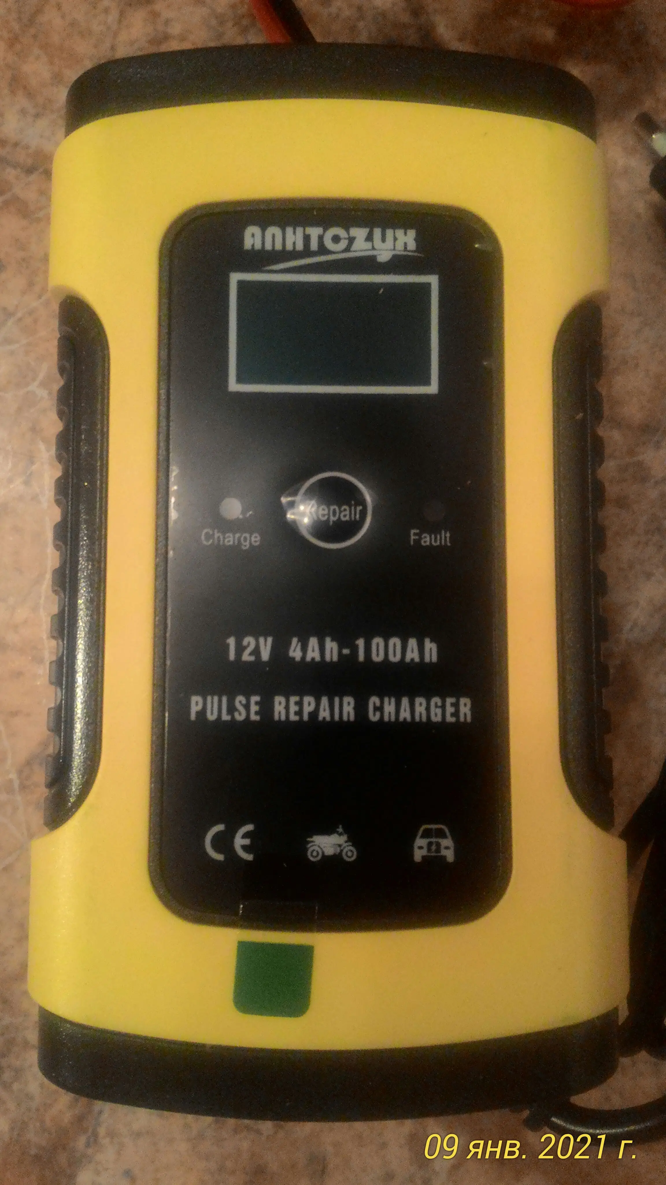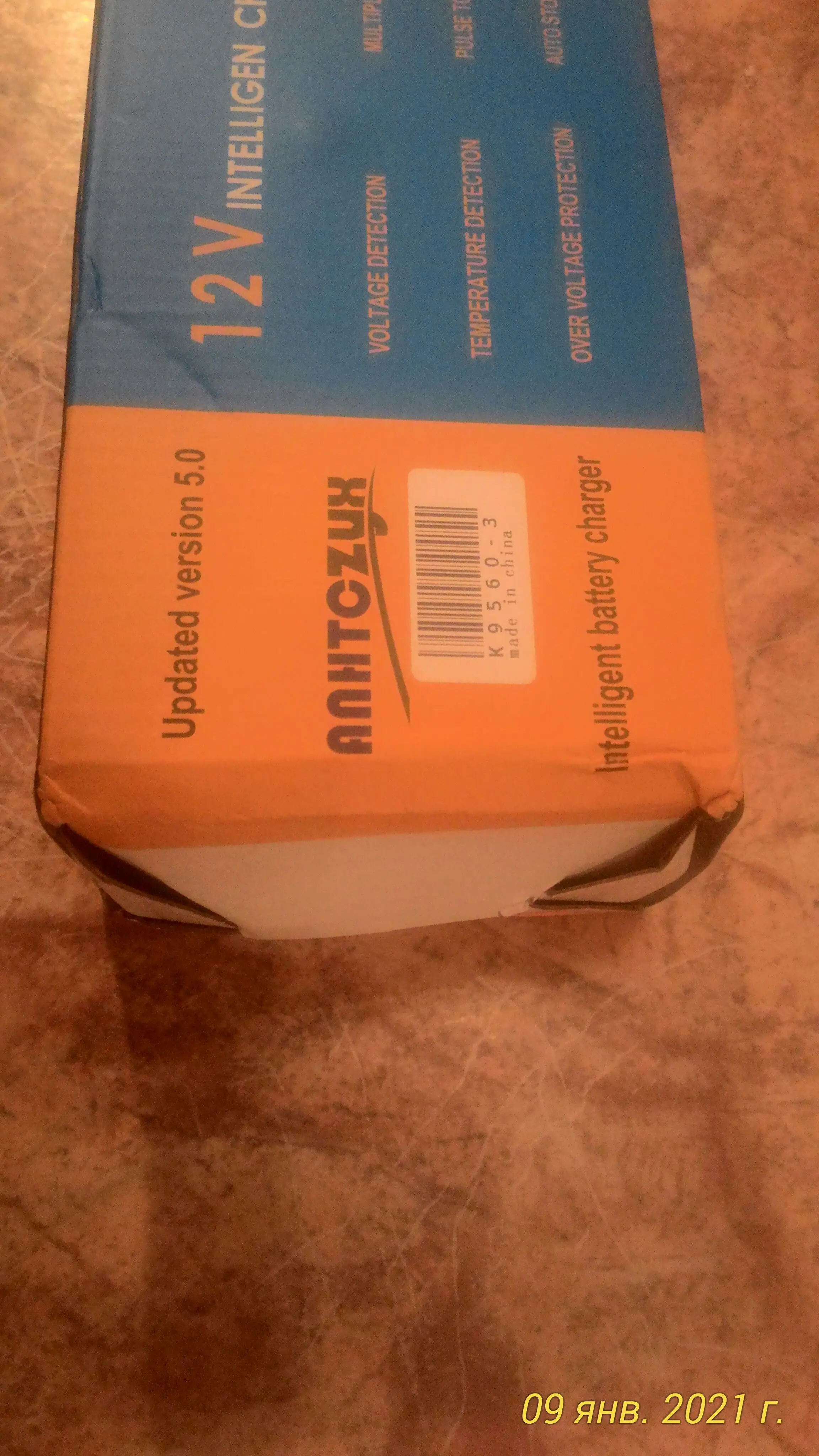 1044 руб. Коробка с одного торца была немного помята. Само устройство без повреждений. 2 режима - зарядка в авторежиме и тоже авторежим но режим пульсации. Кому интересна техничка - По окончании зарядки в 1ом режиме подача тока прекращается полностью, но когда напряжение опускается ниже 13 В, то ток опять подается до напряжения 15 - 15,5В. Если зарядное холодное, то активируется зимний режим (повышается напряжение). Кулер включается если подается ток, так в авто режиме кулер работает всегда, а в режиме импульса также импульсно. Причем в режиме импульса ток непостоянный а реализован дельтой или "лесенкой", т.е. подается с минимального, постепенно увеличиваясь до максимального, который может взять батарея и также плавно опускается до 0. В конце заряда импульс может быть от 0,01А до 0,30А и так до бесконечности по времени. В импульсе ток изменяется плавно. Время изменения от мин до макс тока около 5 сек. В мин и макс значения тока ненадолго задерживаются.