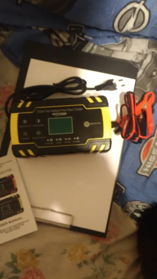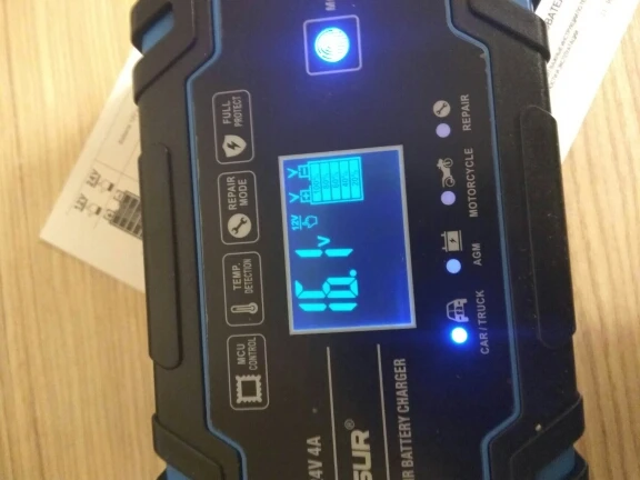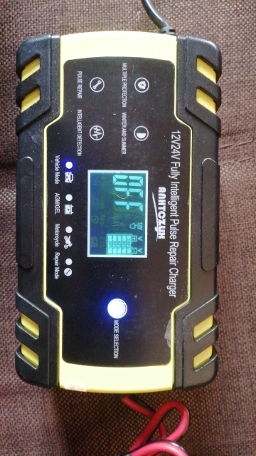 Заказ пришёл в течение 2-х недель. Устройство работает, зарядил аккумулятор 75АЧ. Сначала ток зарядки показывал 8,6А (индикатор 20% зарядки) в конце зарядки опустился до 1А, общее время зарядки было около 8-10 ч.