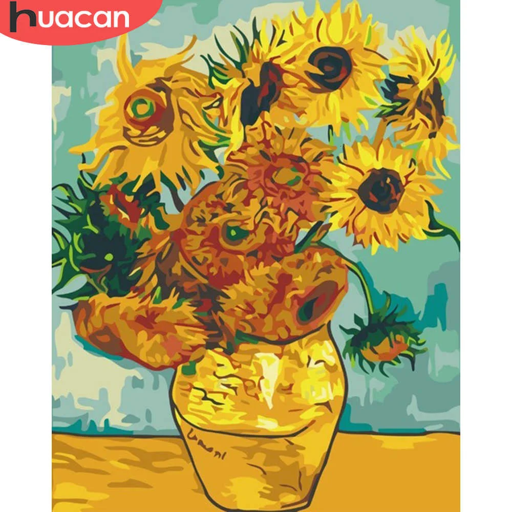 HUACAN краска по номерам подсолнухи ручная краска ed масляная краска наборы для рисования холст DIY картинки украшение дома подарок