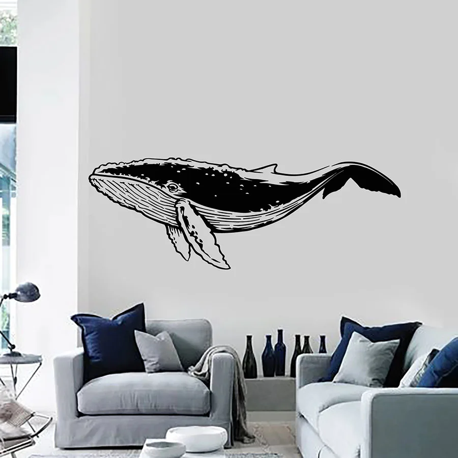 Виниловая наклейка на стену, большой кит, морское животное, морское искусство, наклейки на окна, стильная морская тема, домашний декор для спальни, детской, S1358