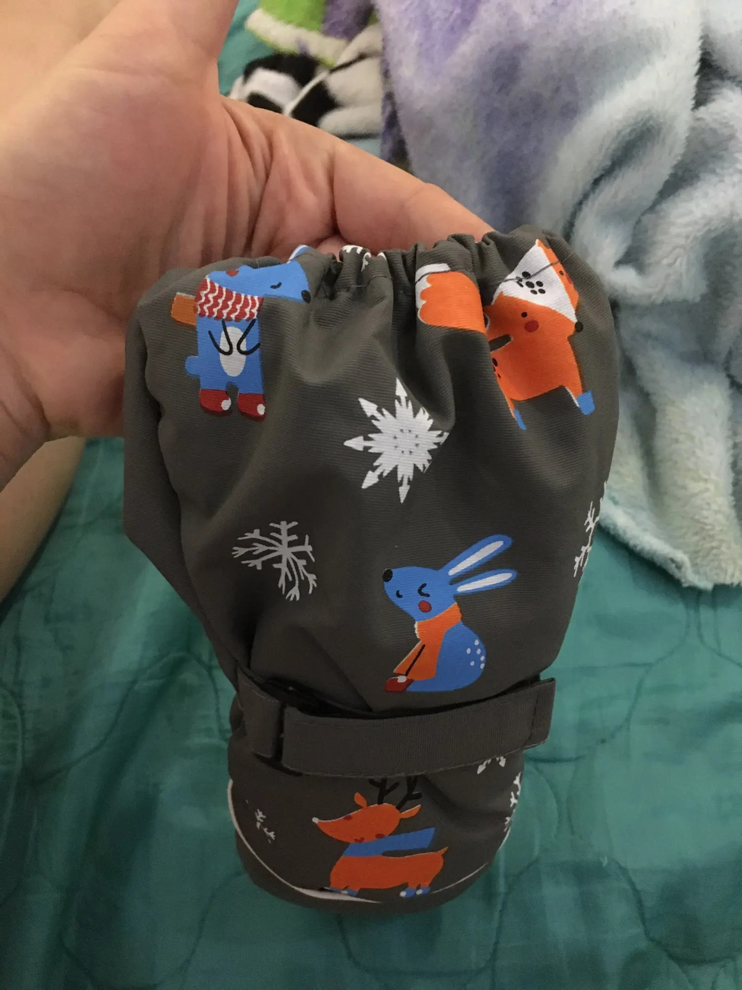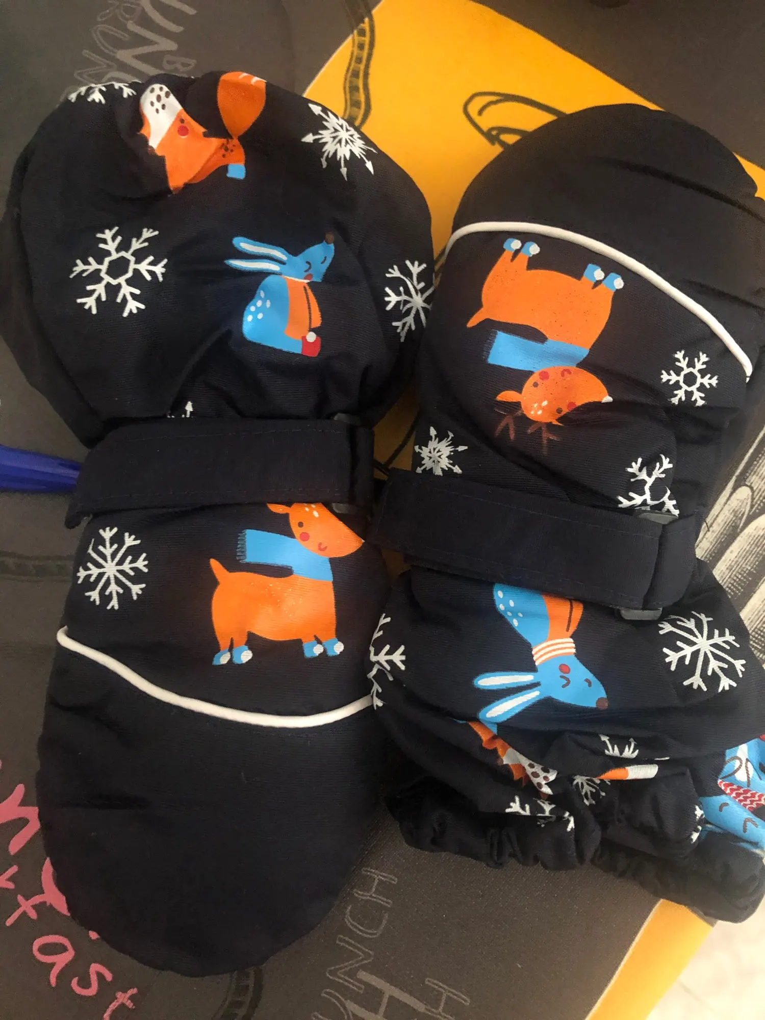 Перчатки Лыжные детские, ветрозащитные, водонепроницаемые, Нескользящие, с длинным рукавом и изображением оленя, кролика