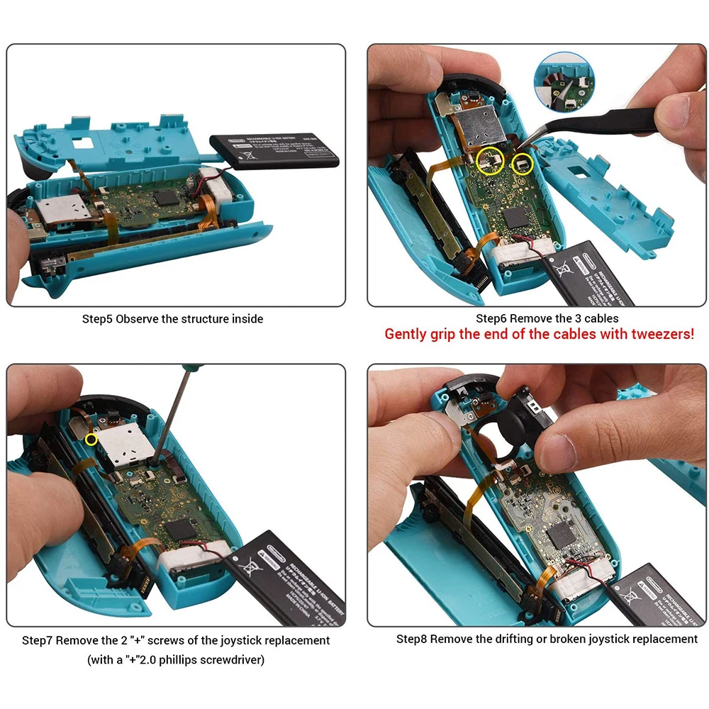 Аналоговая палка была протестирована каждый по одному перед отправкой.Прежде чем начать заменять, пожалуйста, лучше посмотрите видео-гид на Youtube.Когда вы берете нерабочие аналоговые палки от контроллера joy con.Сначала откройте замок с черной пряжкой, а затем используйте пинцет, чтобы поместить новую аналоговую головку кабеля в гнездо и. (Не подключайте и не отключайте головку кабеля слишком много раз. Если слишком много раз, это может повредить аналоговый кабель)После установки, пожалуйста, откалибруйте!Будьте внимательны и будьте терпеливы! Большое спасибо за внимание!